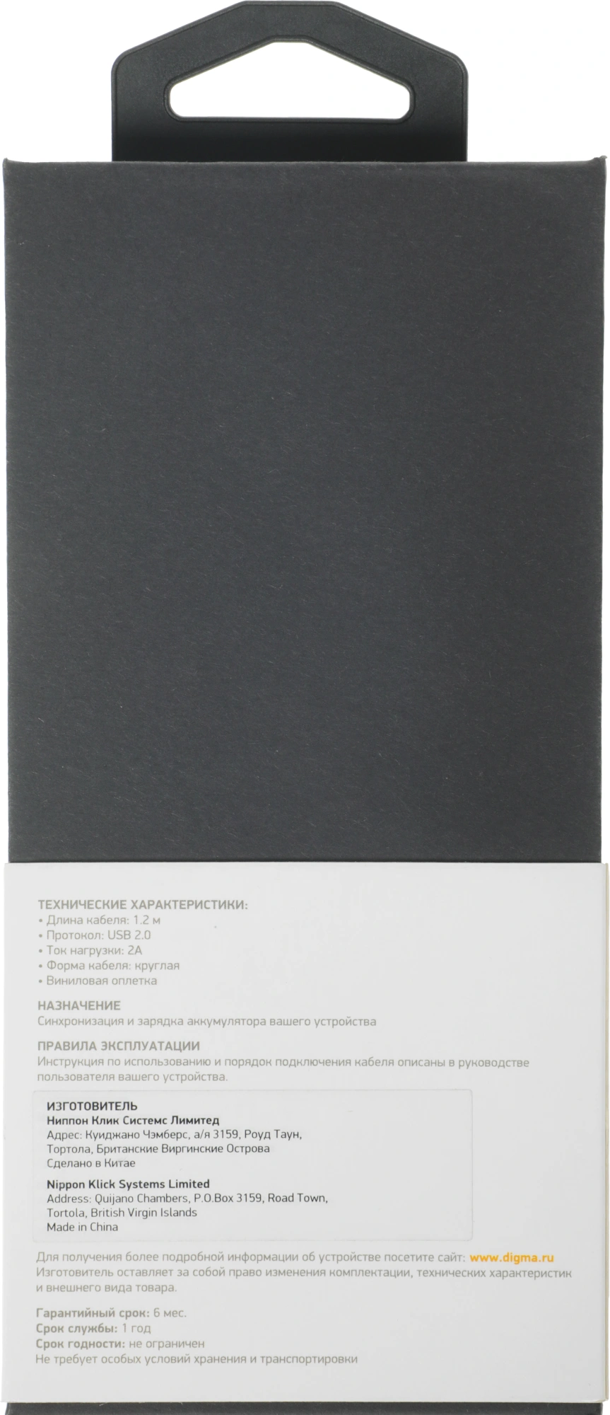 Кабель Digma MICROUSB-1.2M-WH USB (m)-micro USB (m) 1.2м белый