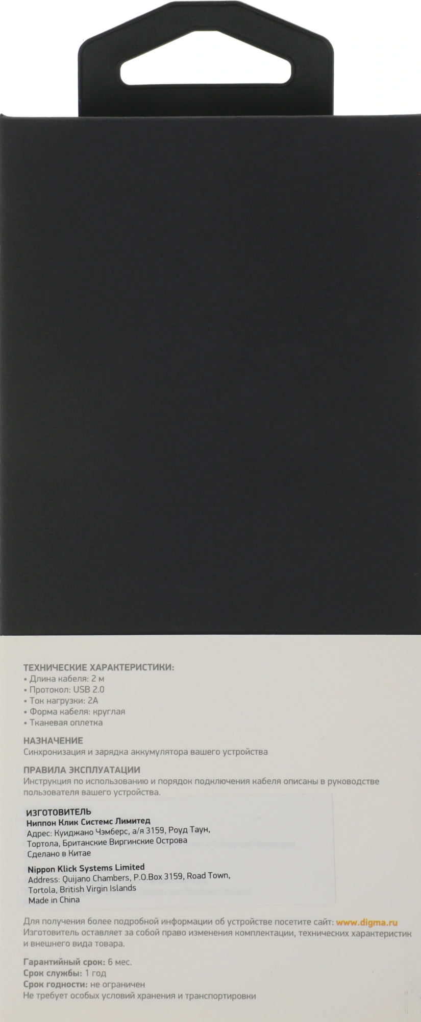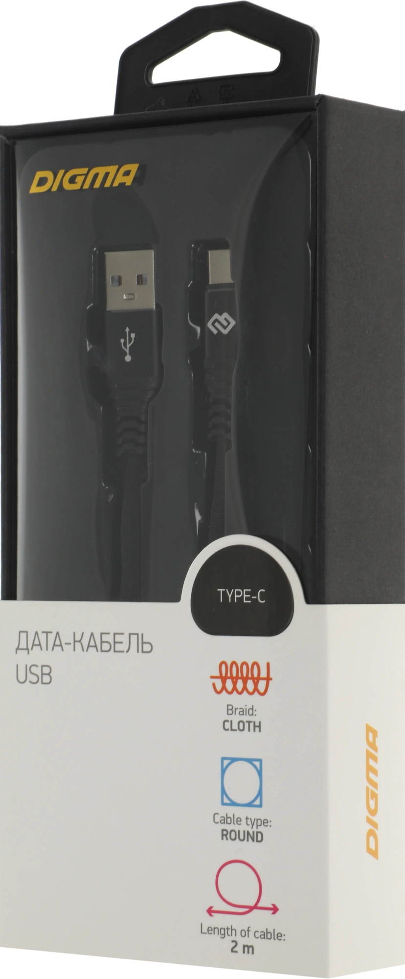 Кабель Digma TYPE-C-2M-BRAIDED-BLK USB (m)-USB Type-C (m) 2м черный