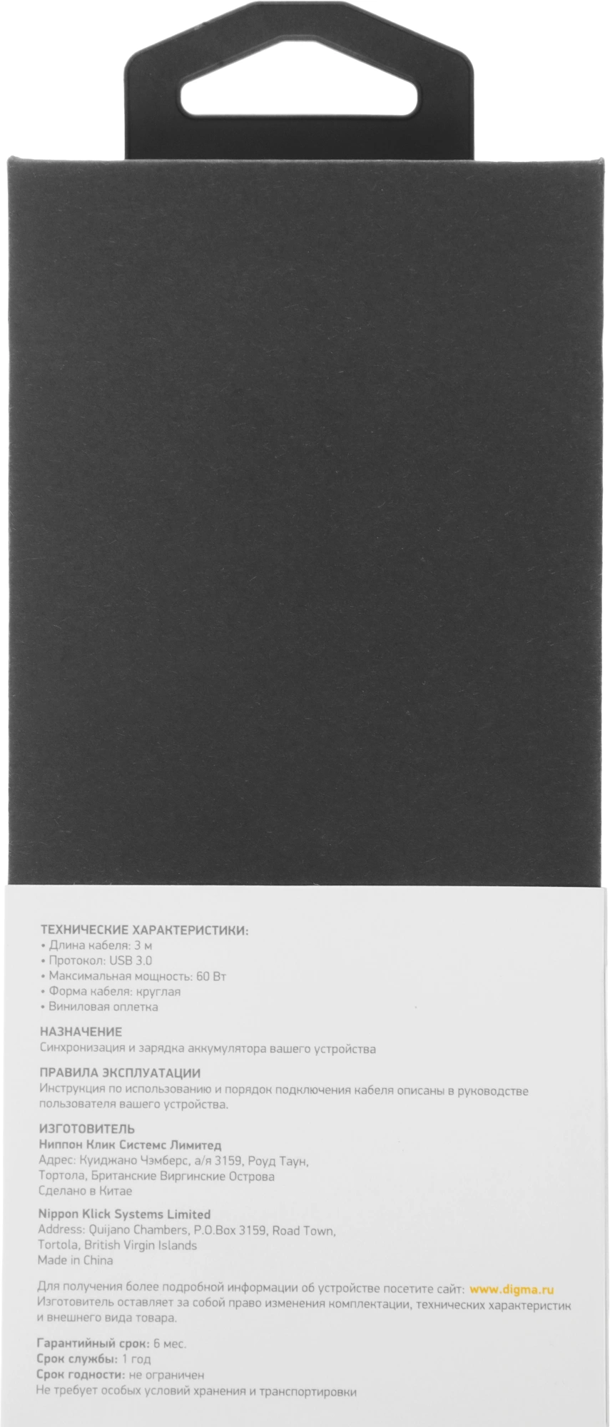 PD-60W-3M USB Type-C (m)-USB Type-C (m) 3м черный