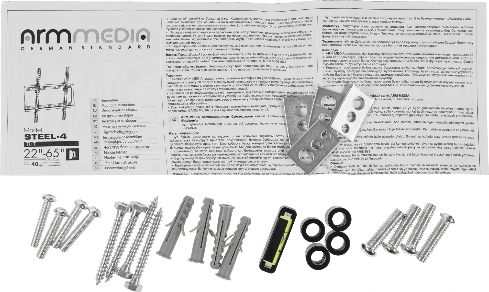 Кронштейн STEEL-4, для LED/LCD/PLASMA телевизоров 22"-65", max 40 кг, настенный, от стены 25 мм, max VESA 400x400 мм, крепление направляющей с "двойным крючком"
