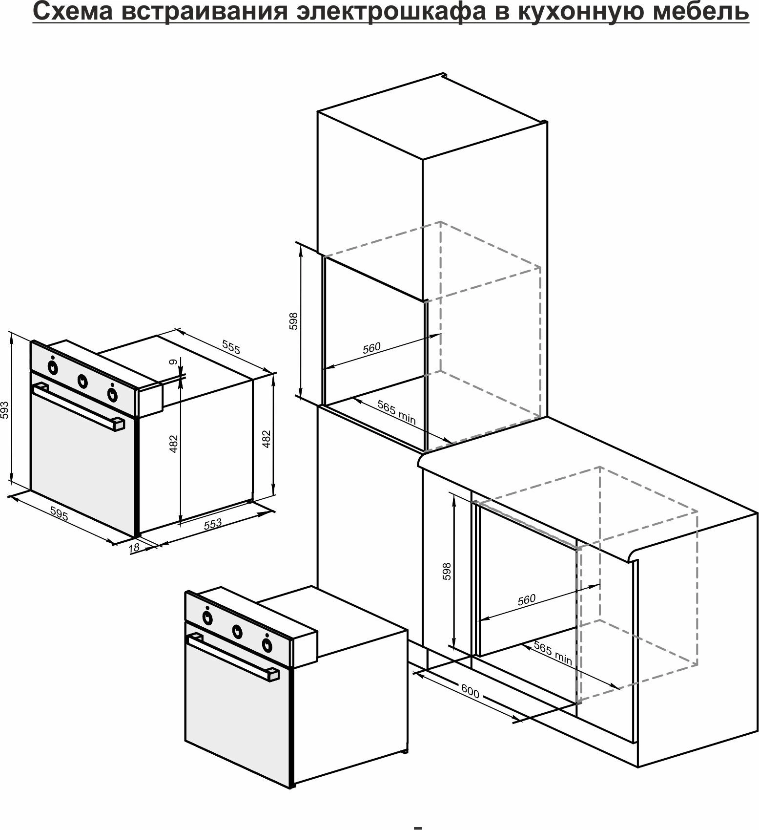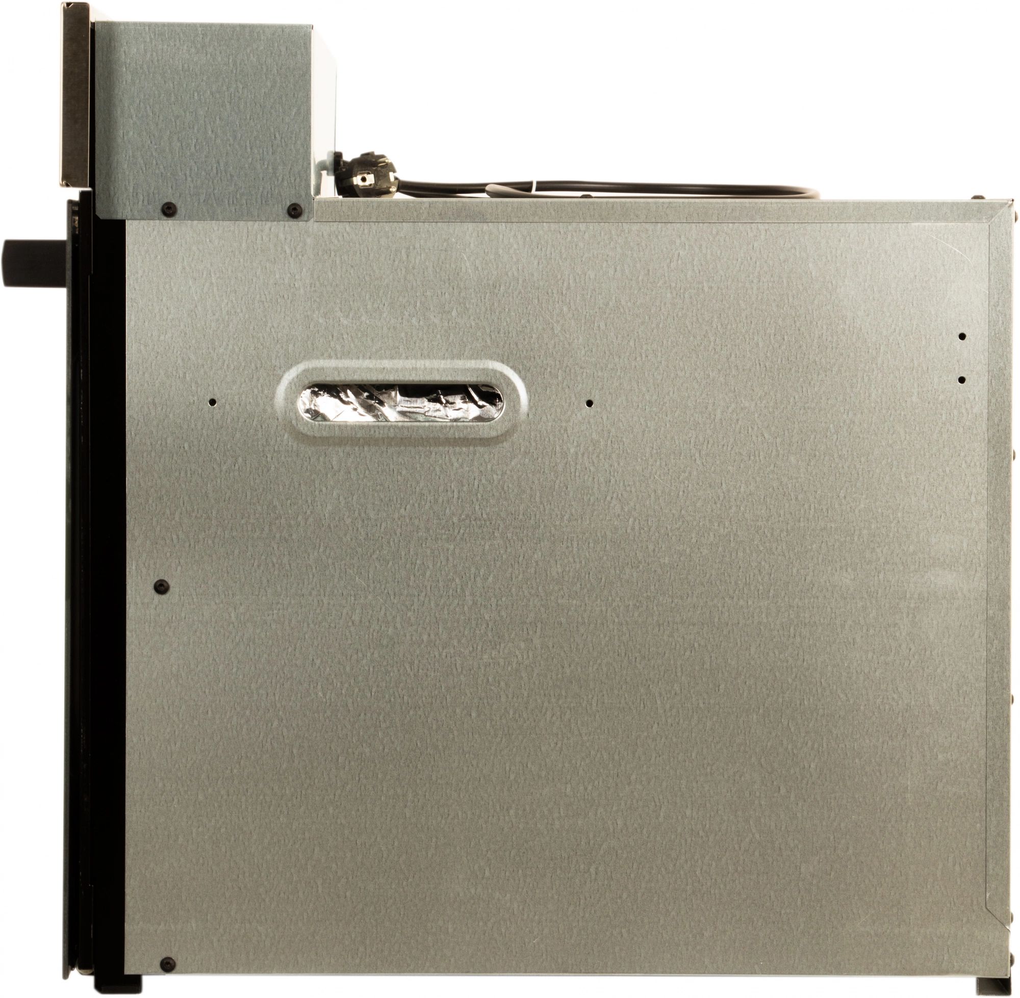 Встраиваемый электрический шкаф с фасадом из нержавеющей стали, 9 режимов работы, тангенциальное охлаждение, механический таймер, подсветка, конвектор, гриль, вертел, терморегулятор.
