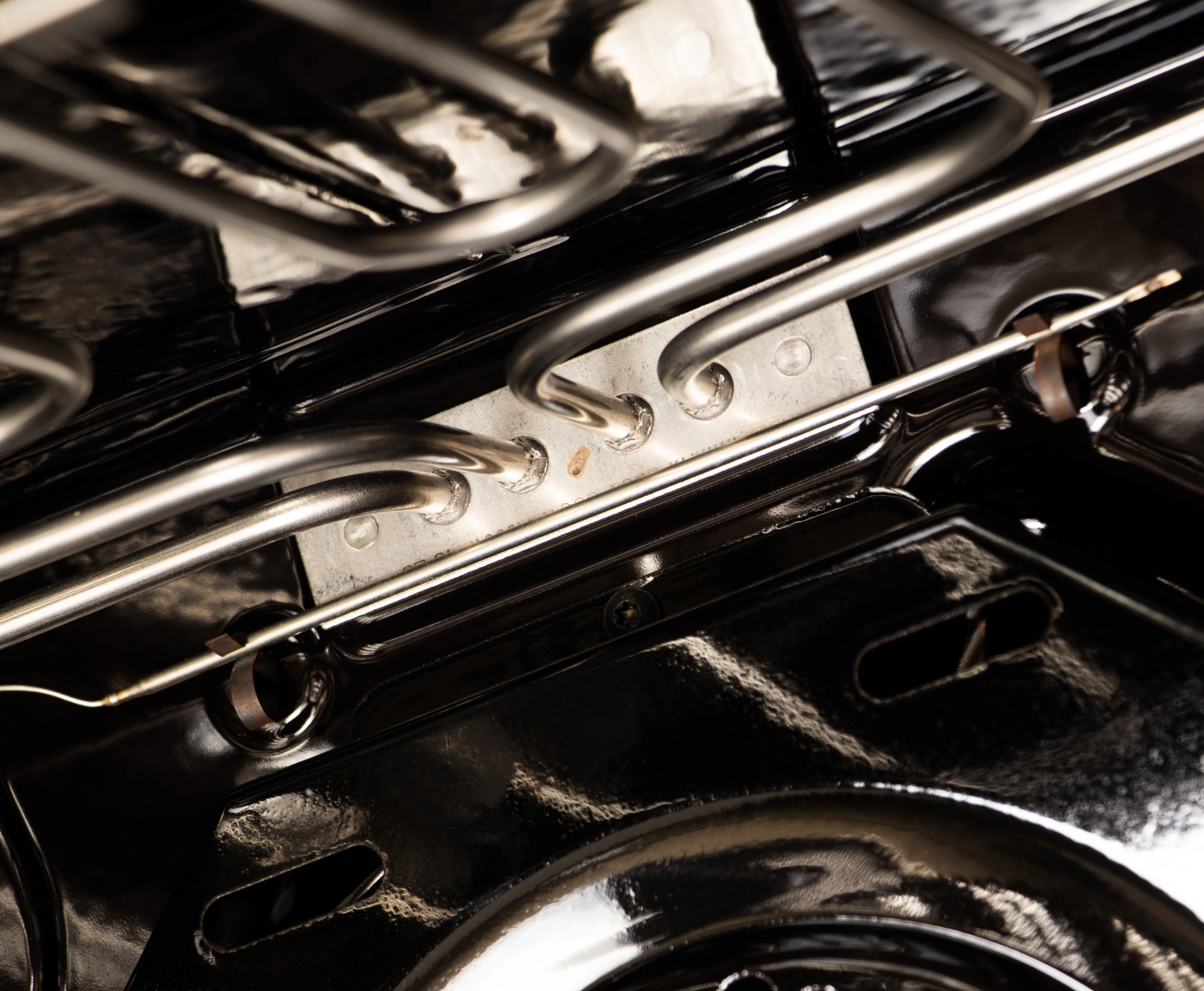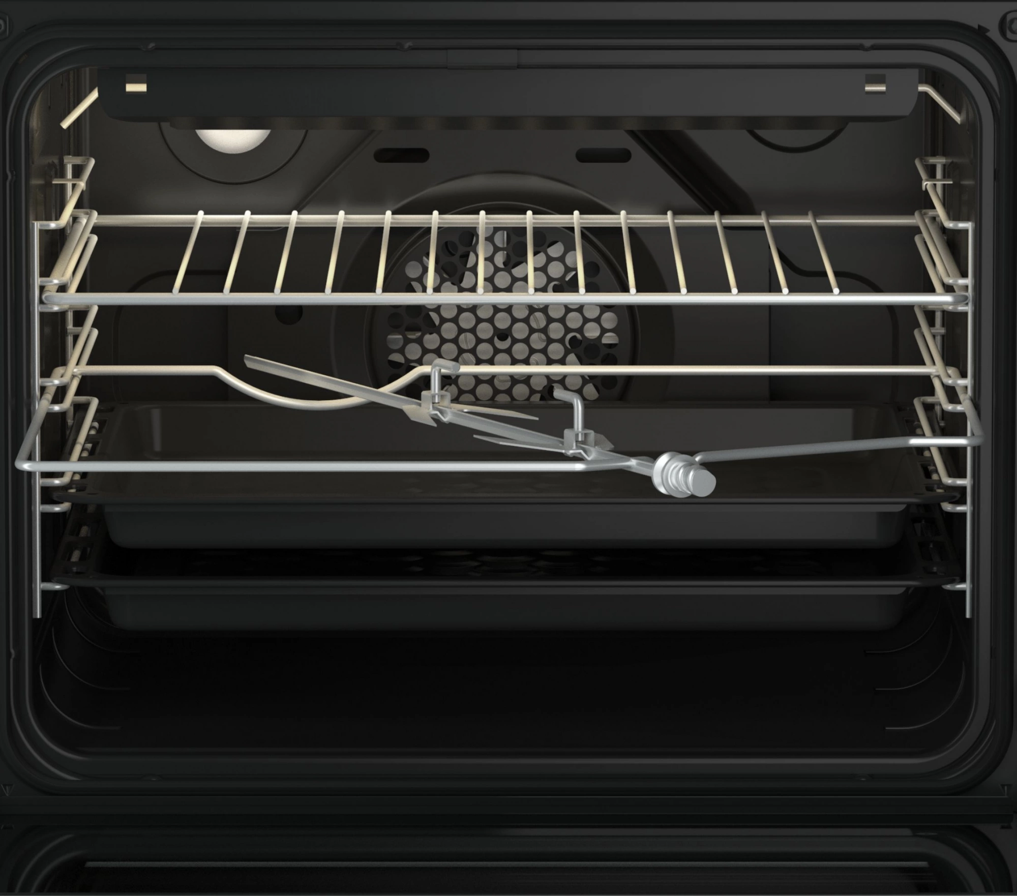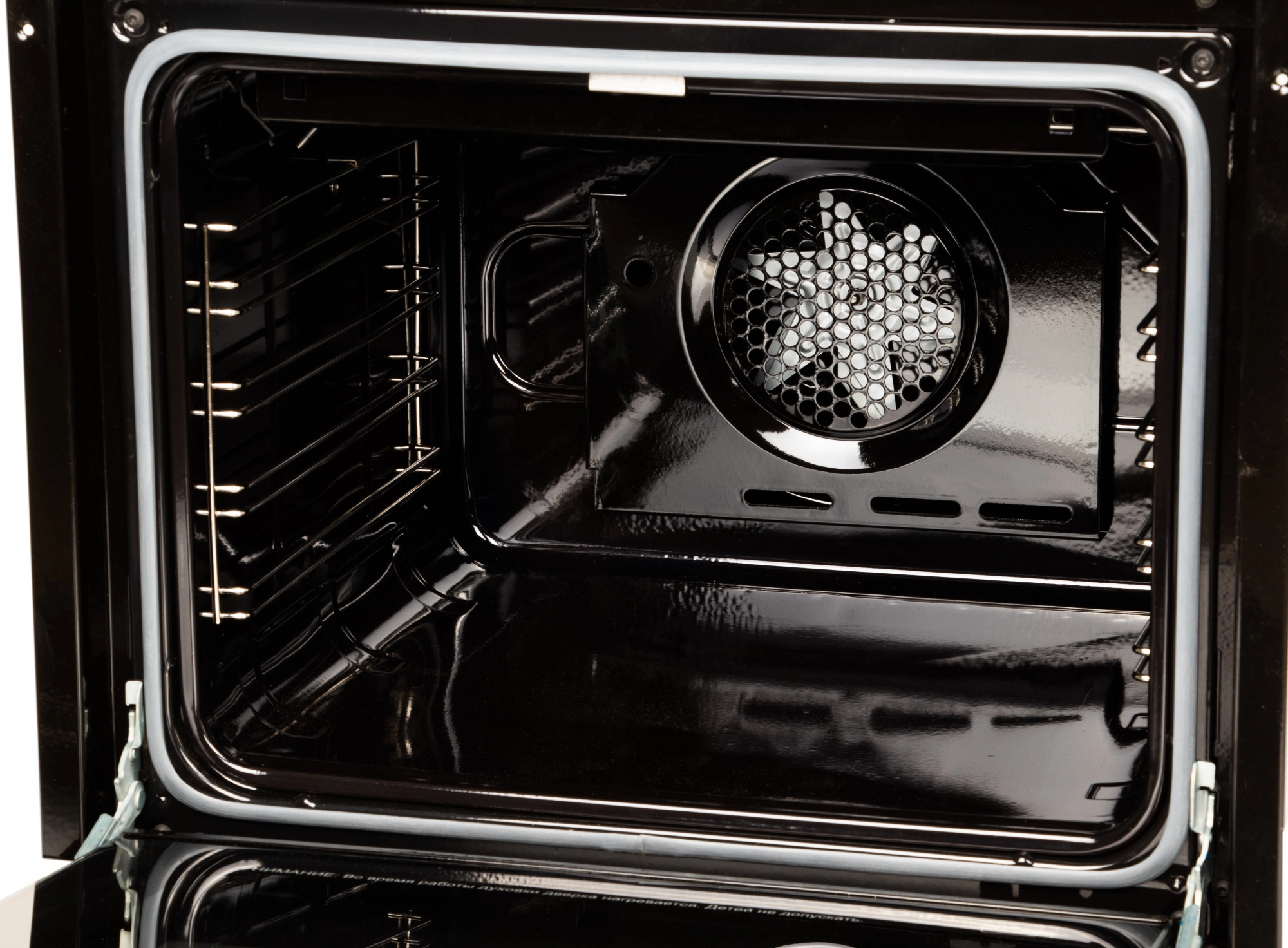 вентилятор охлаждения, вертел, полностью стеклянная внутренняя поверхность дверцы духовки, утапливаемые переключатели