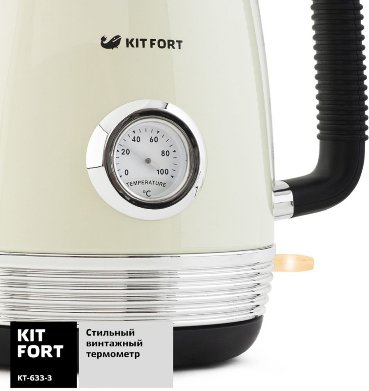 На корпусе расположен термометр, который показывает степень нагрева воды.