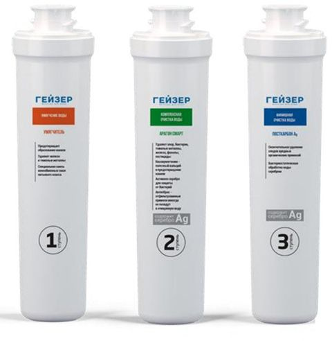 Умягчитель - ионообменная смола пищевого класса, удаляет соли жесткости. Арагон Смарт -удаляет механические примеси, растворенное железо, тяжелые металлы, радионуклиды, бактерии и вирусы. Посткарбон Ag - кокосовый уголь и материал Каталон. Удаляет хлор, органические и хлорорганические соединения.