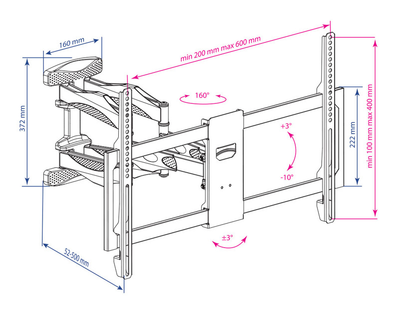 Надежная стальная конструкция. Вращение экрана ±3 . Съемная монтажная пластина. Кабель-канал. Декоративные настенные накладки.