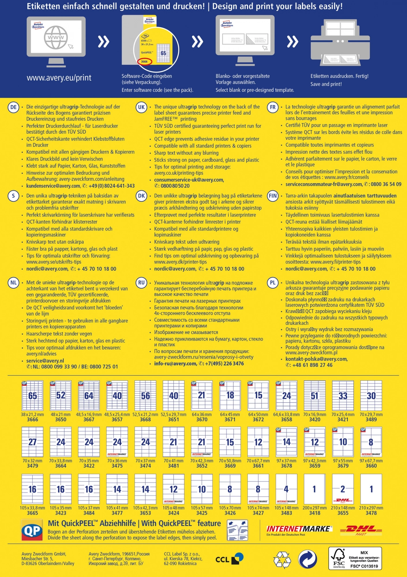 A4 97x21.2мм 65шт на листе/70г/м2/100л./белый мато...