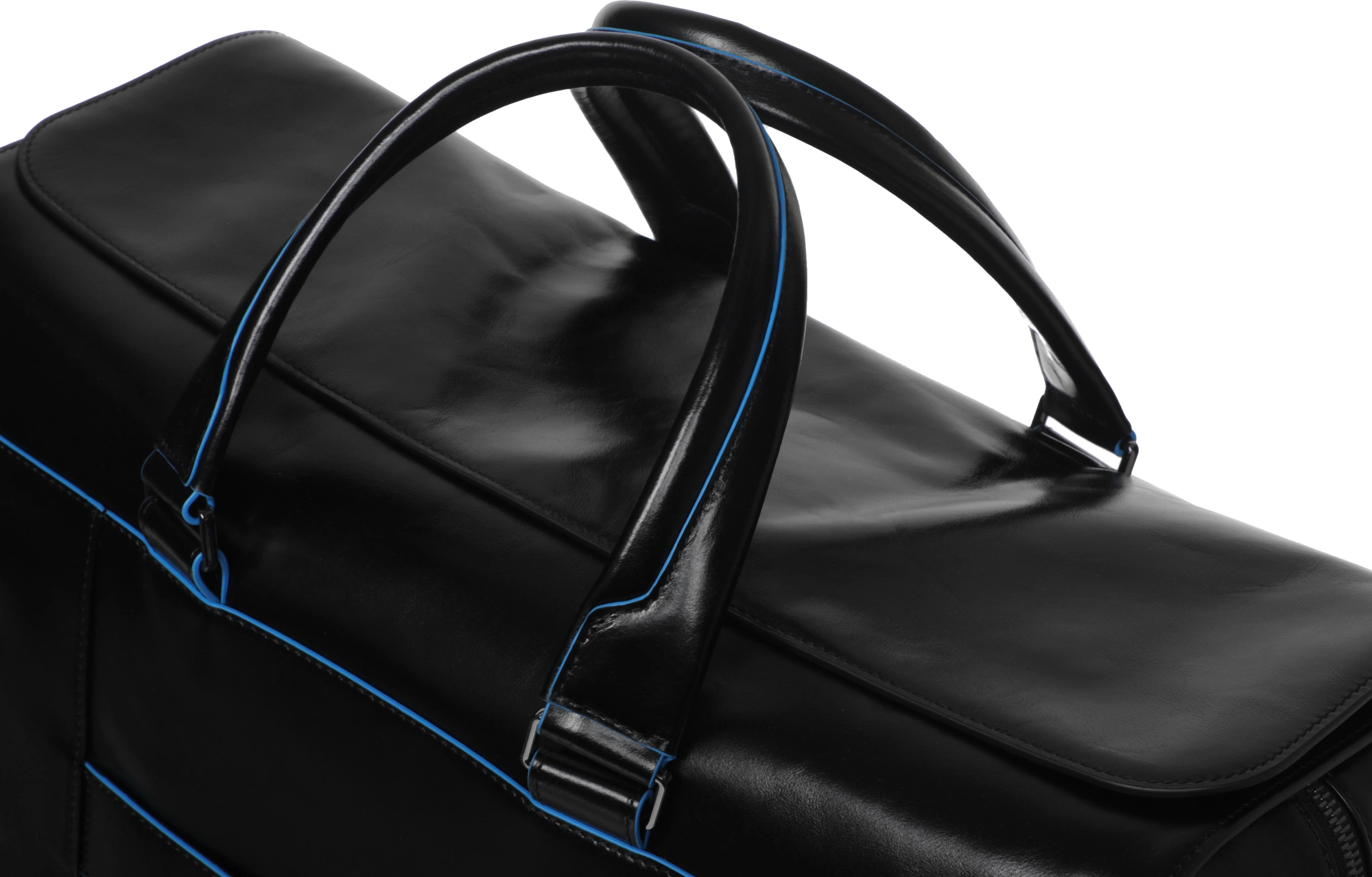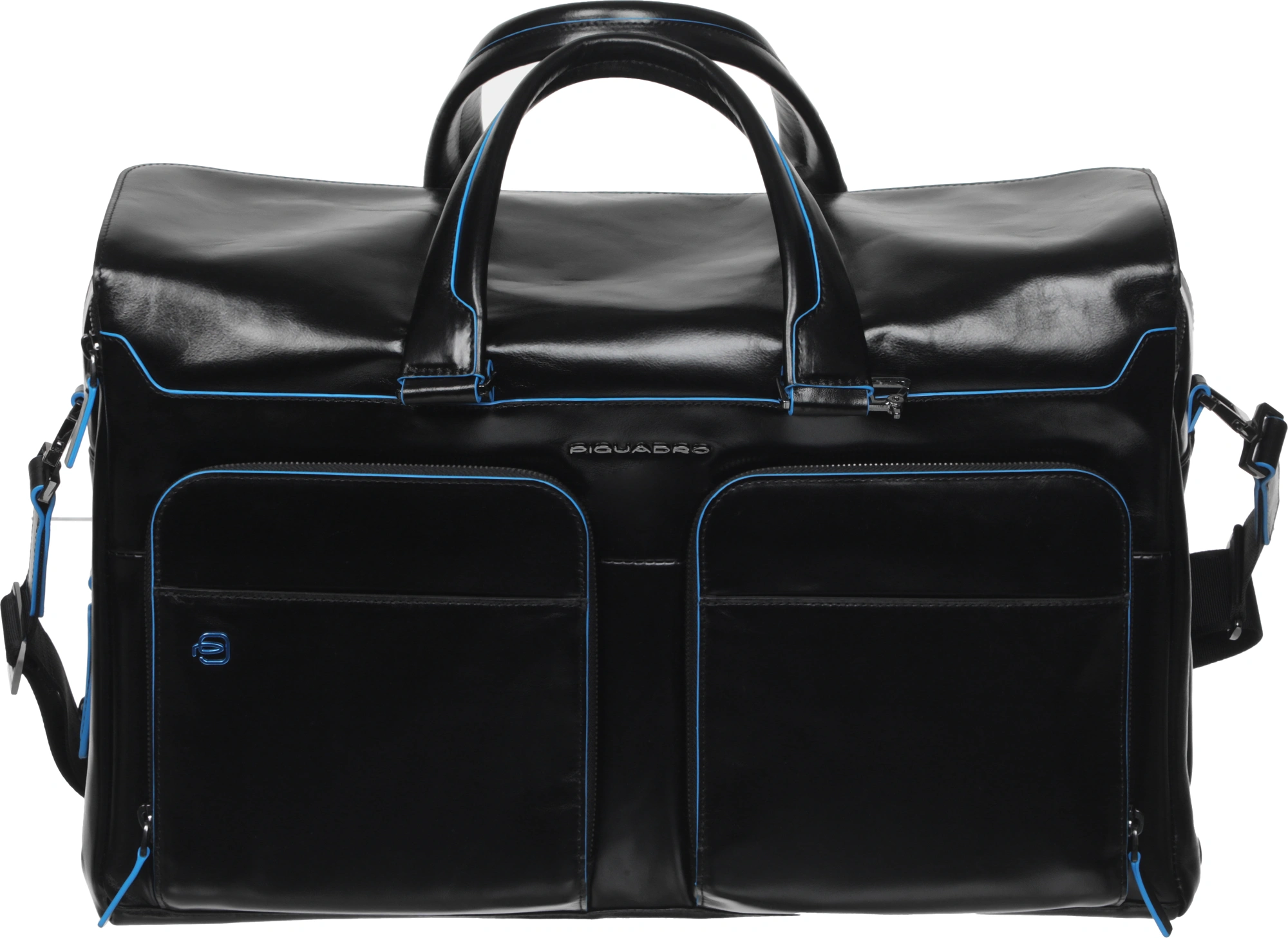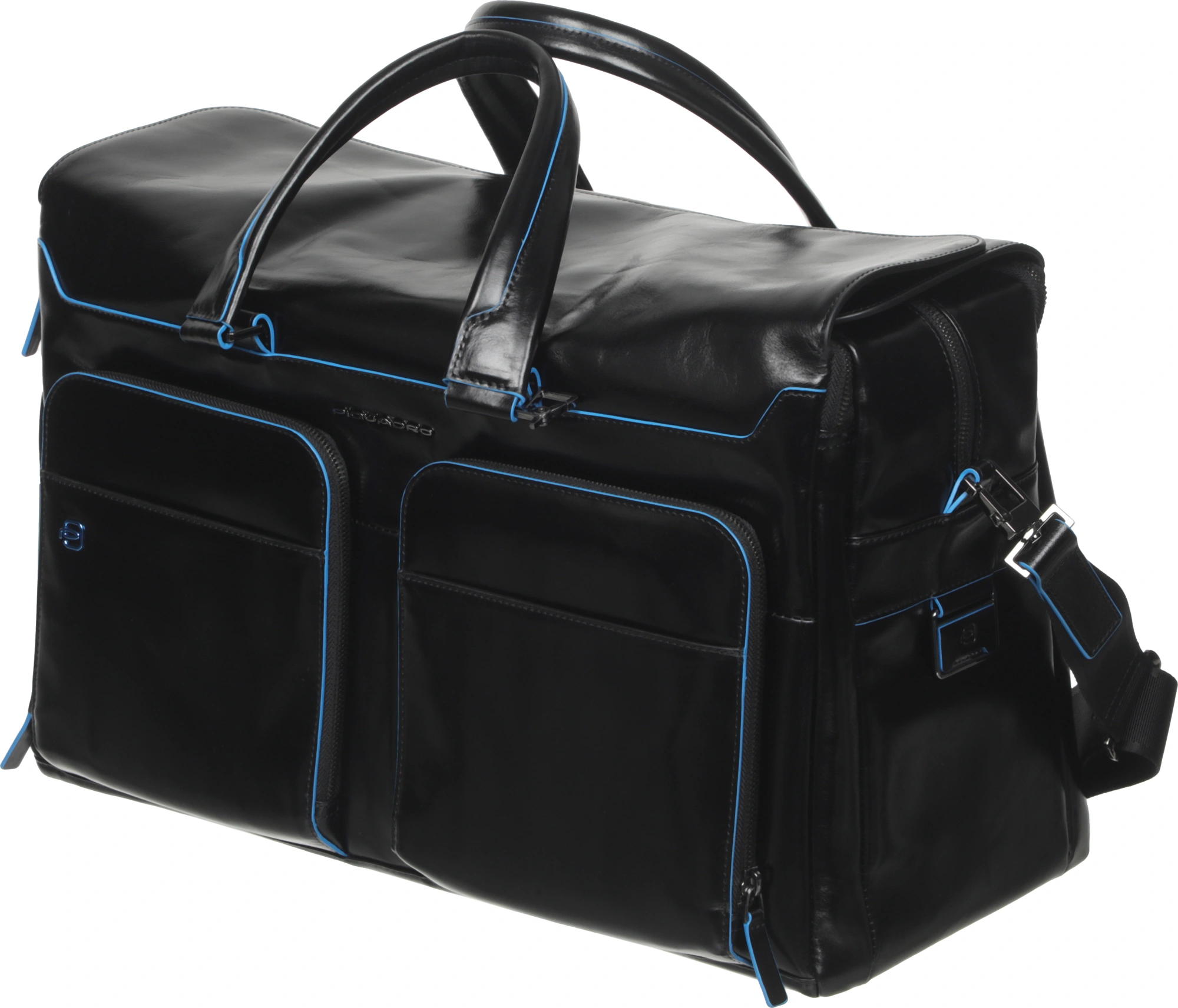 Кожаная дорожная сумка Piquadro из коллекции Blue Square. Сумка изготовлена из мягкой телячьей кожи с восковой пропиткой и фирменным голубым кантом. Имеет одно большое-основное отделение, куда с легкостью поместятся Ваши вещи, а также еще два отделения, одно из которых предназначено для 15 ноутбука