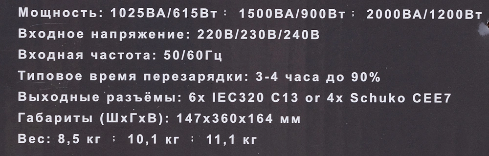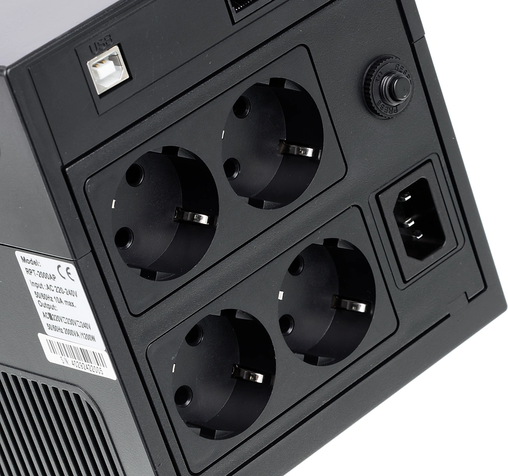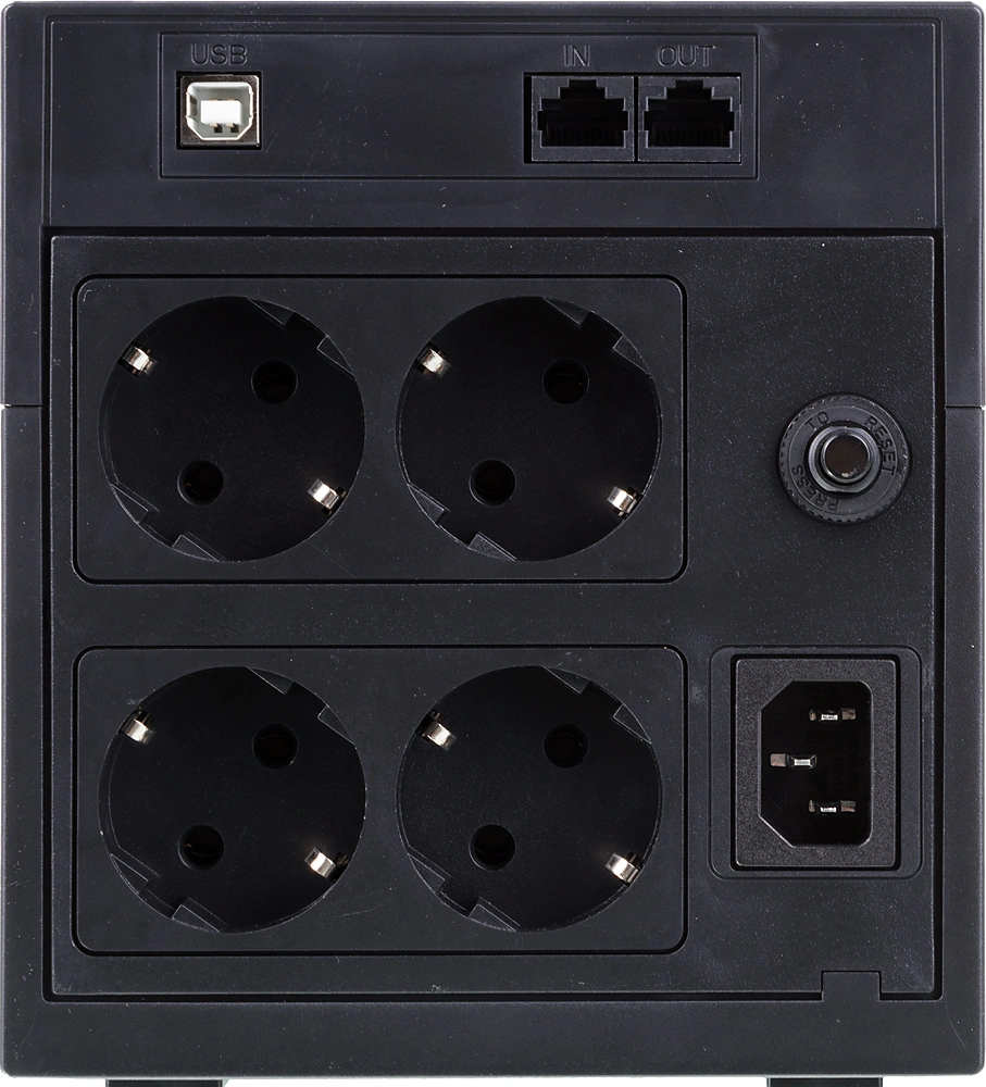 защита сети (порт RJ-45), защита телефона (порт RJ-11), от глубокого разряда батареи, от короткого замыкания, от перегрузки