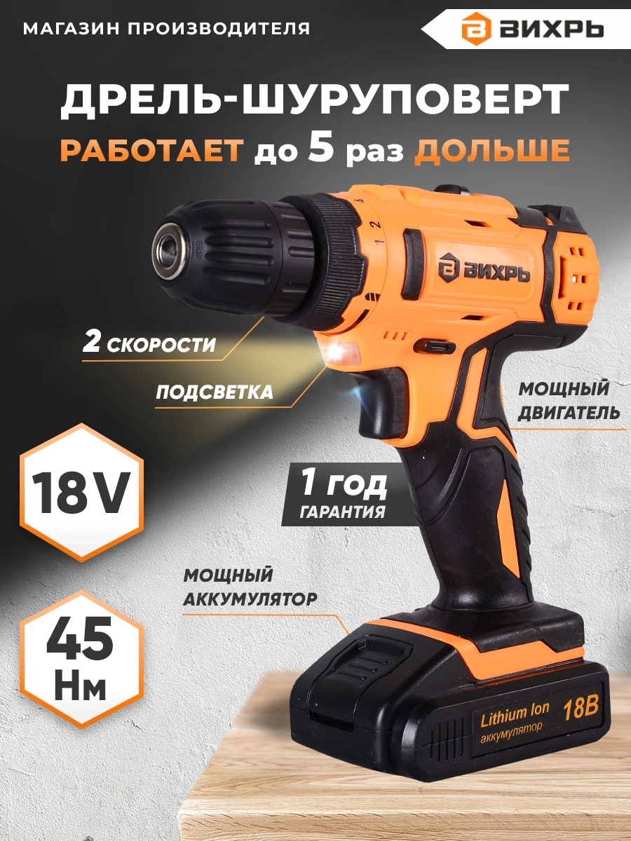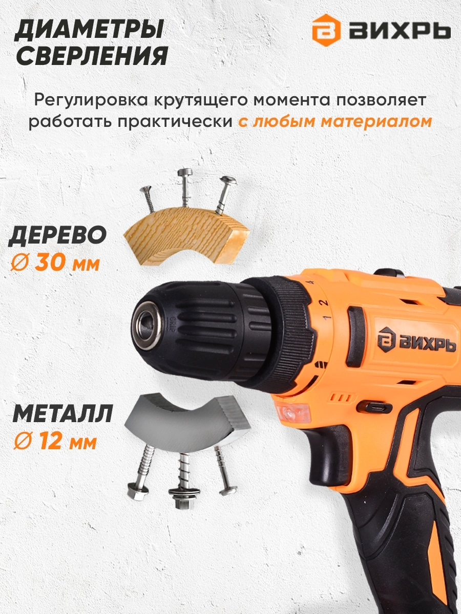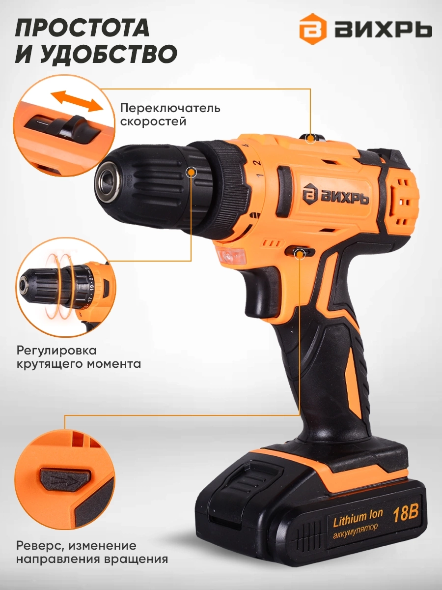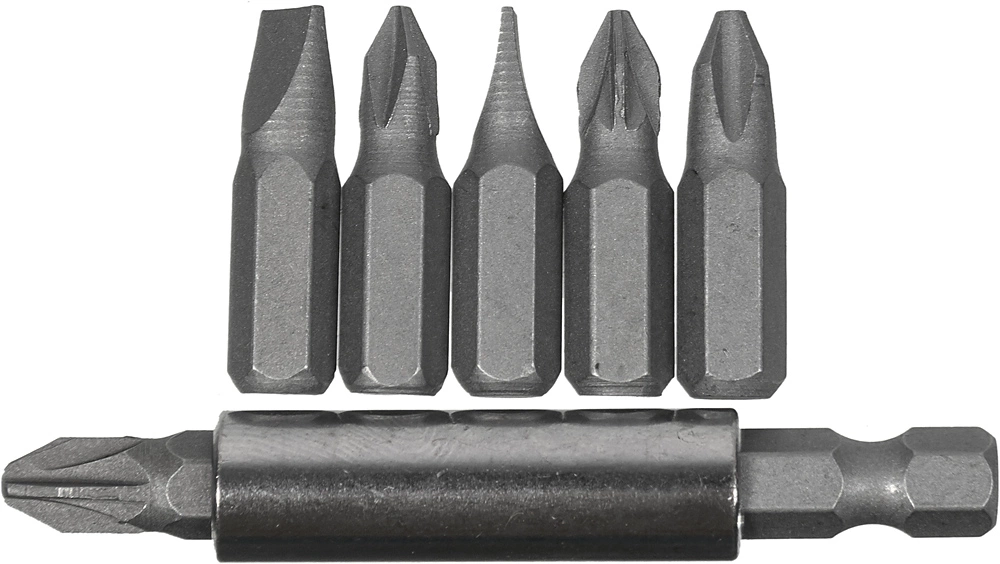 Дрель-шуруповерт, бита 6шт., адаптер-удлинитель для бит, адаптер питания, зарядное устройство, паспорт (инструкция)
