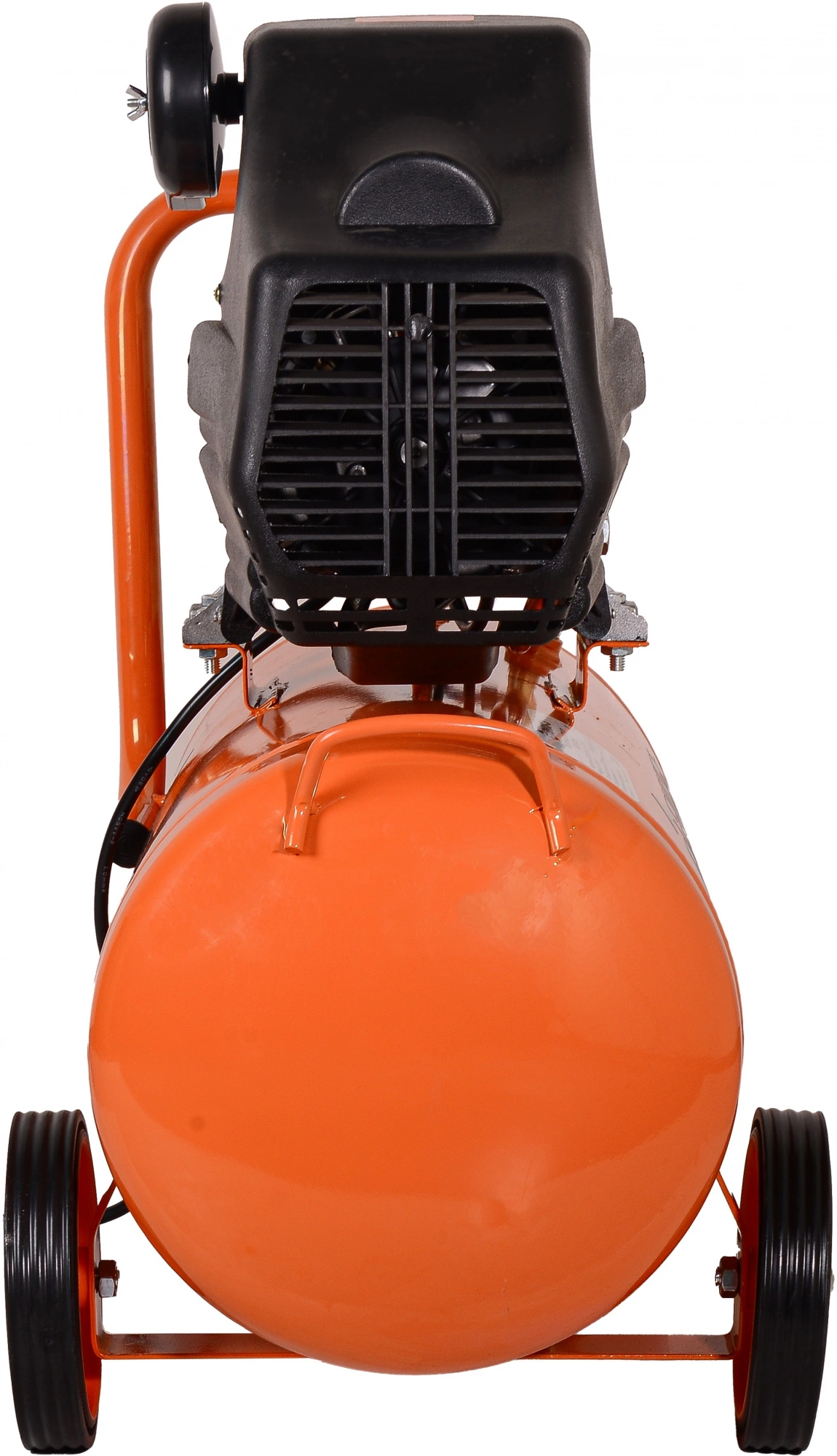Компрессор, колеса (комплект), сапун масляный, смазочное масло для поршневых компрессоров в пластмассовой емкости (250 мл.), инструкция, упаковка.