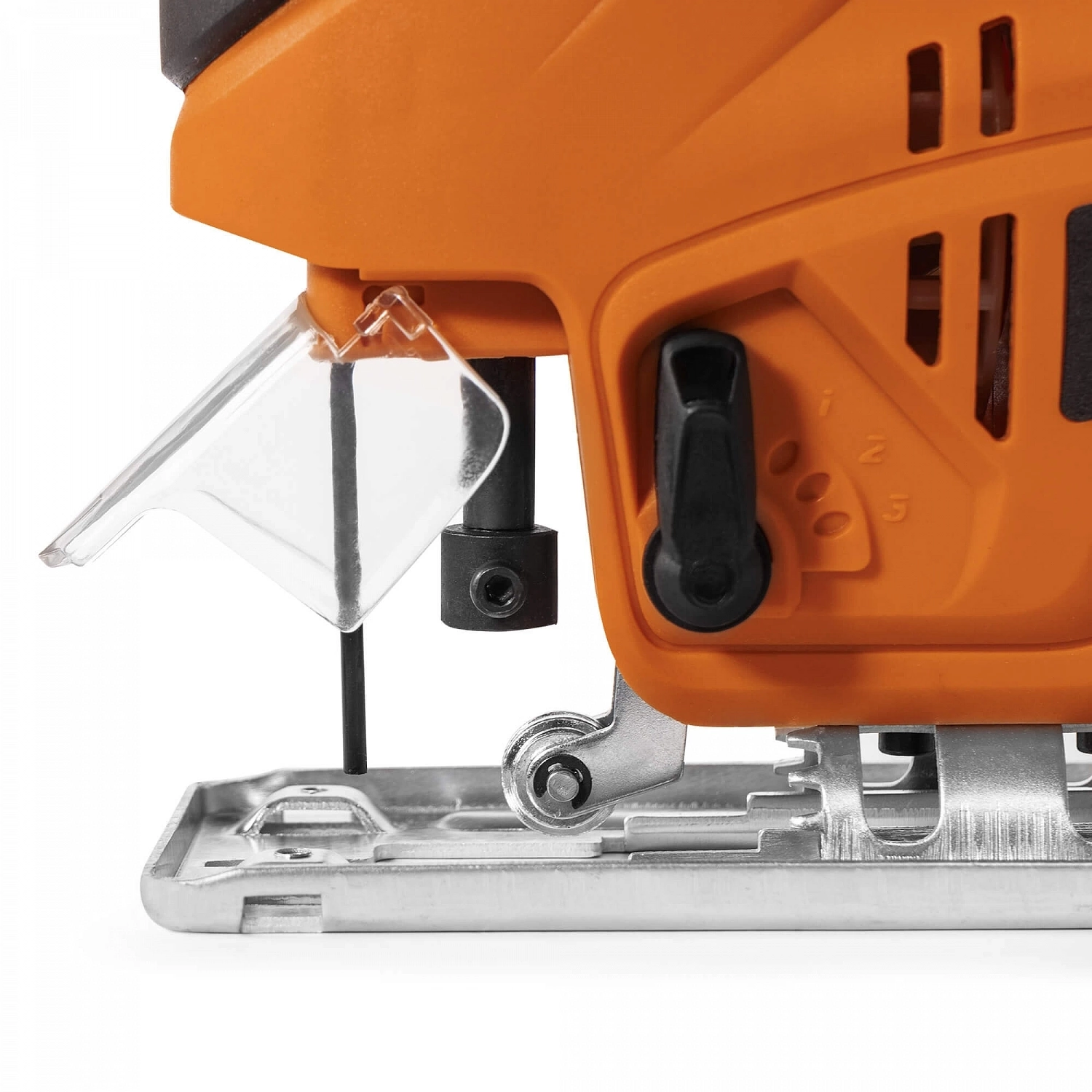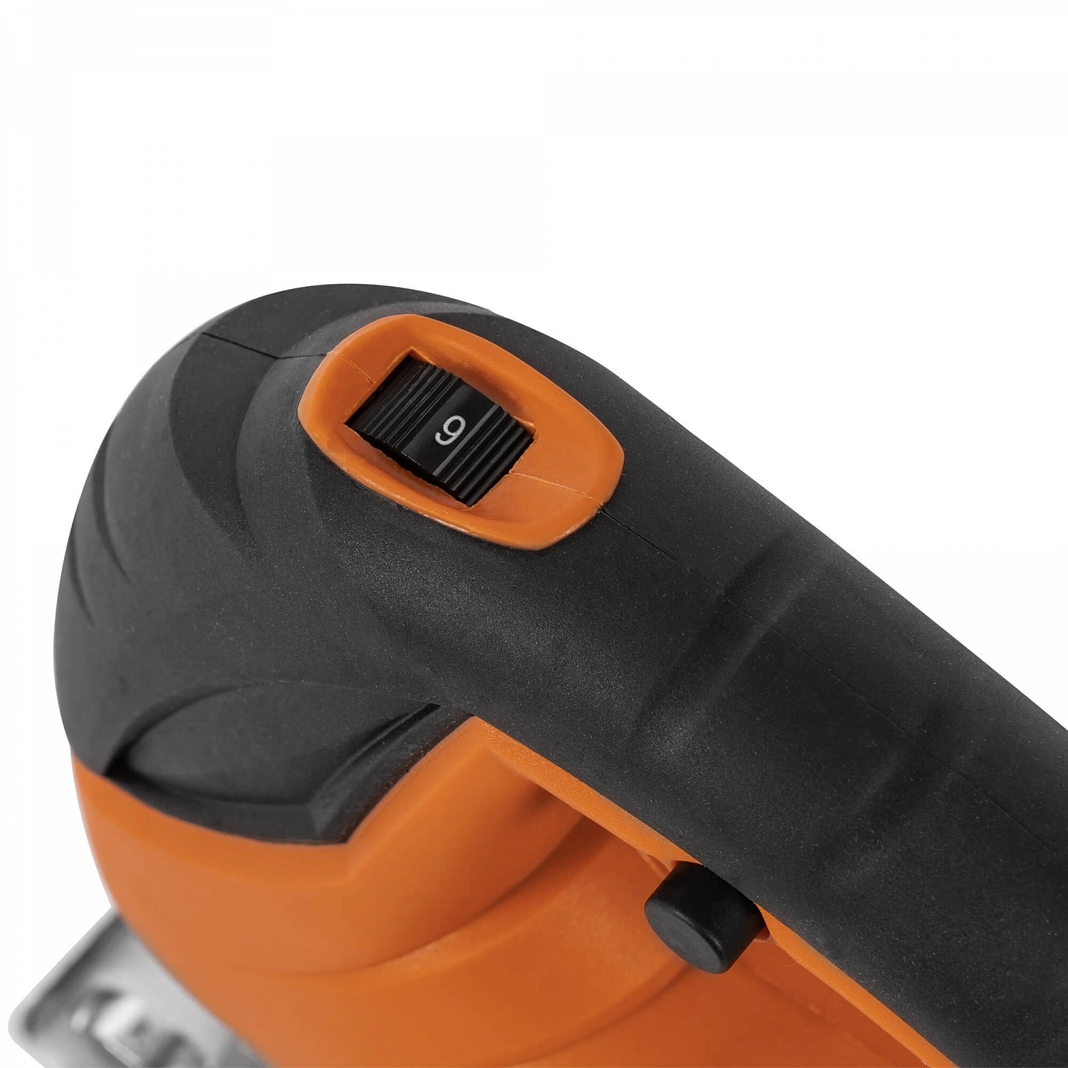 Фиксатор кнопки включения; Штуцер для подключения пылесоса; Регулировка маятникового хода; Надежная стальная поворотная подошва (90-45 градусов).