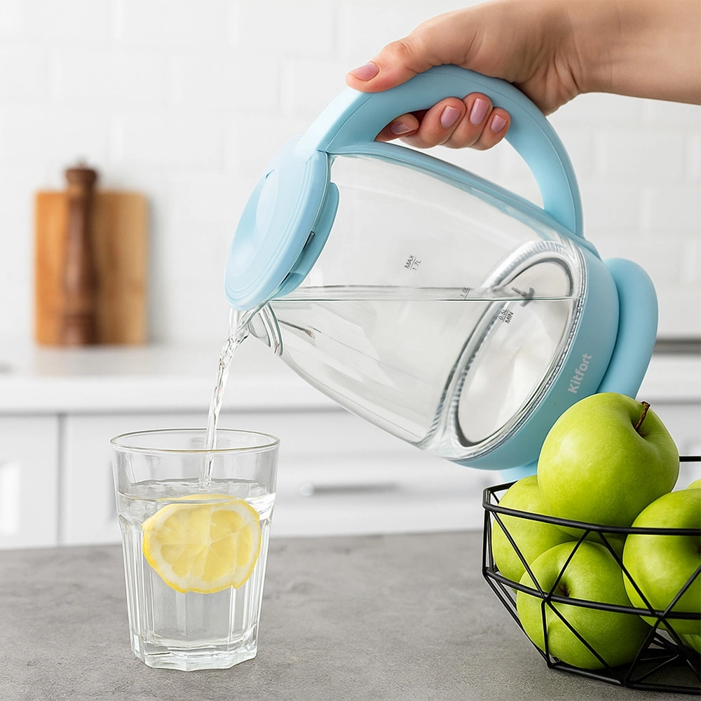 1.7л. 2200Вт голубой корпус: стекло/пластик