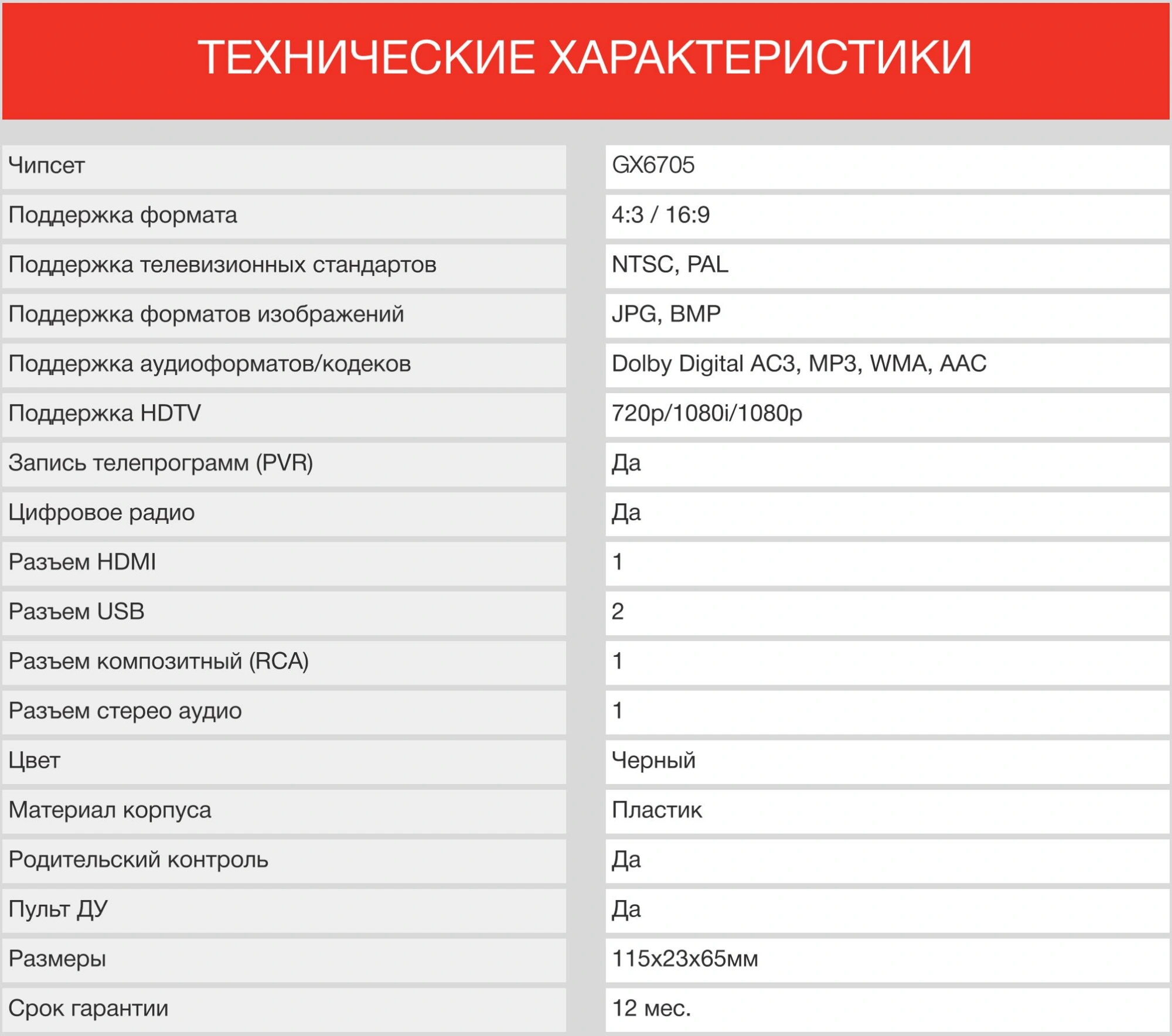 Классический дизайн устройства выполнен в элегантном черном цвете. Небольшая приставка займет совсем немного места и легко впишется в интерьер любого помещения. Отлично сбалансированный пульт дистанционного управления добавит дополнительный комфорт в процессе просмотра.