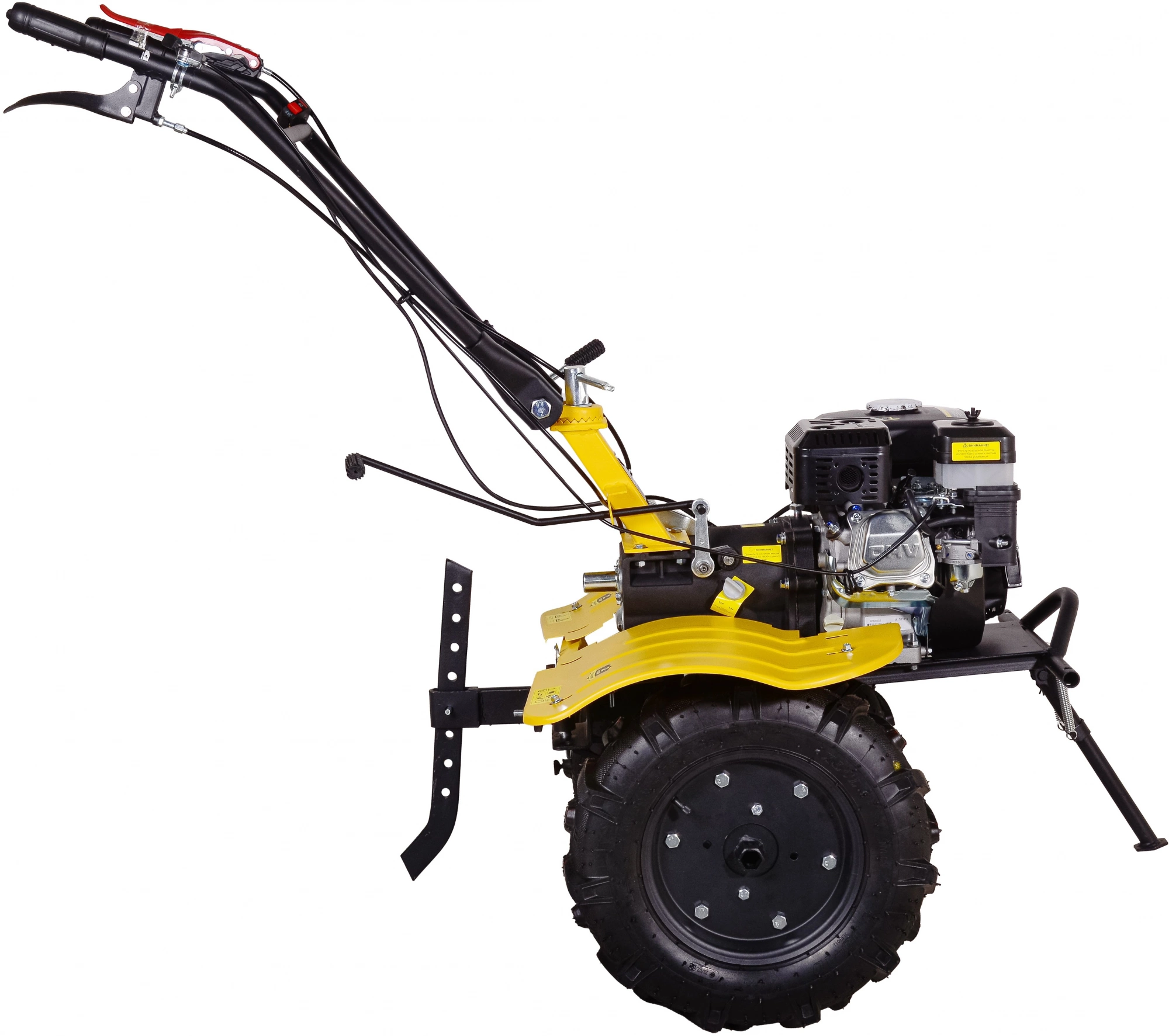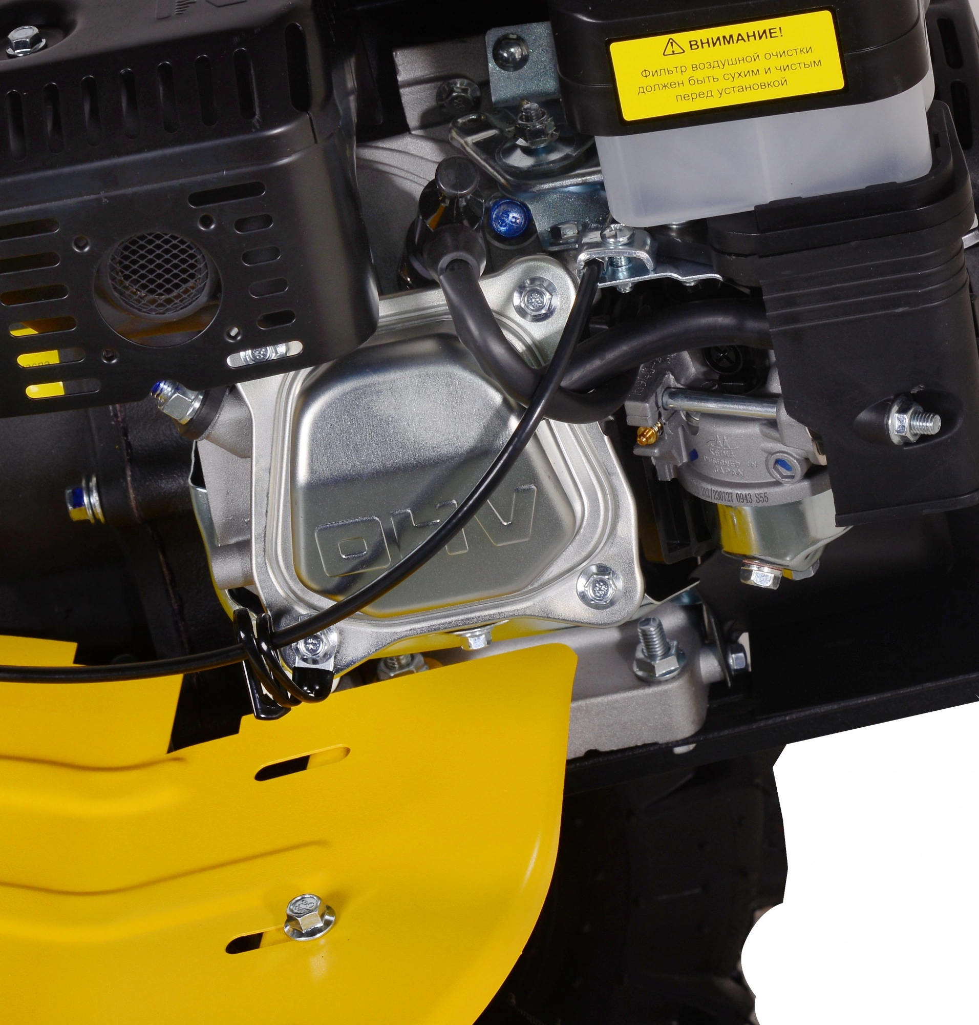мотоблок, фрезы 8шт, ручка управления в сборе, подножка 1шт, сошник 1шт, пневмоколеса 2шт, защитные крылья 2шт, кронштейн для крепления навесного оборудования 1шт, комплект крепежа, паспорт(инструкция).