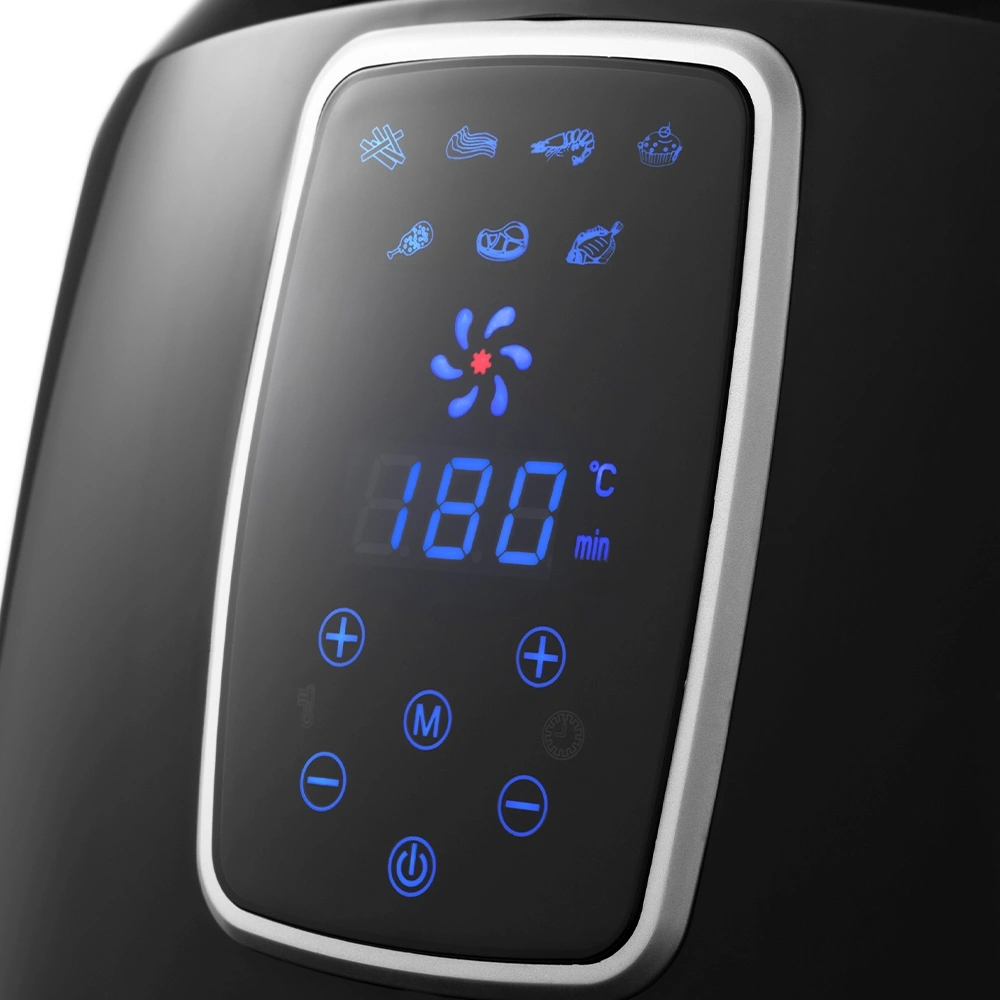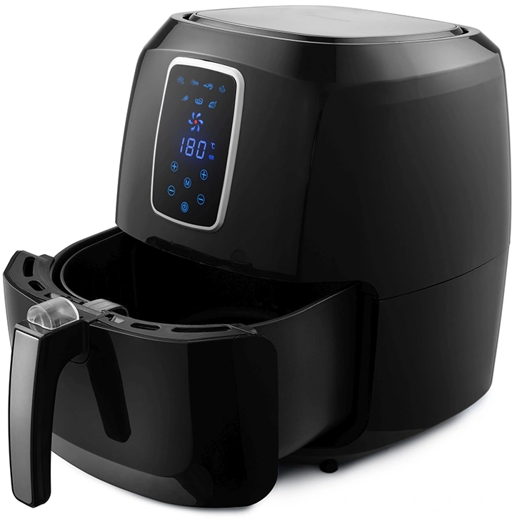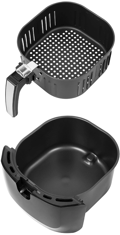 Может использоваться как аэрогриль, а также как аэрофритюрница и духовка, и позволяет готовить большинство продуктов без добавления масла. Аэрогриль оснащен электронным управлением, он имеет 7 автоматических программ и дисплей. Таймер от 0 до 60 мин с шагом 1 мин. Ёмкость корзины 5,2 л.
