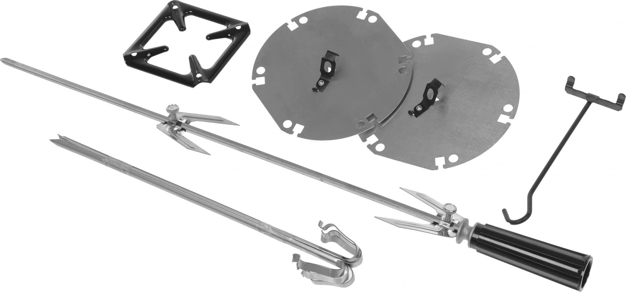 Вертел с электроприводом, Ножки регулировочные, Съемные проволочные направляющие духовки, Терморегулятор (термостат), Фасад стеклянный, Двухзонная горелка, Шашлычница, Таймер сенсорный