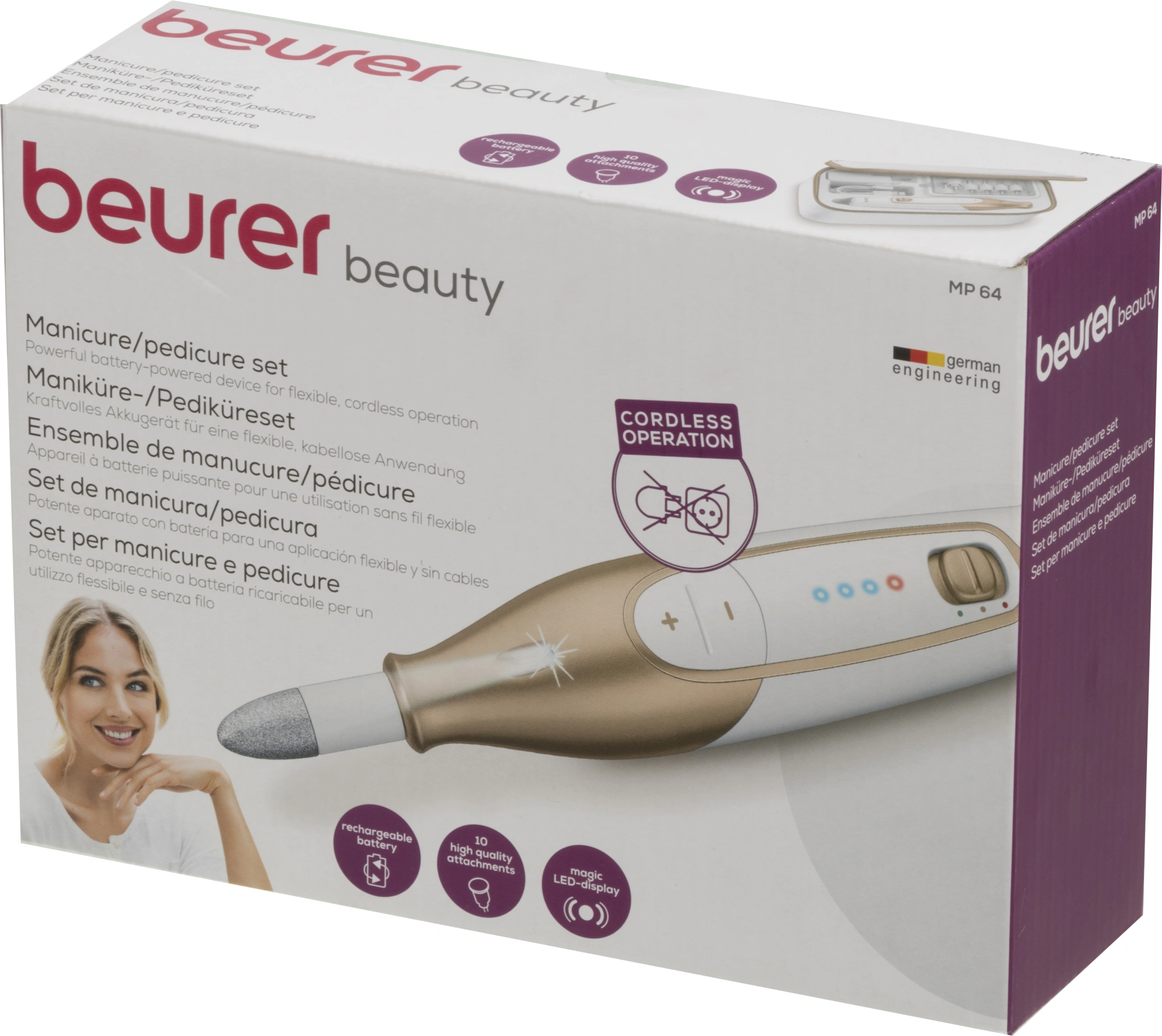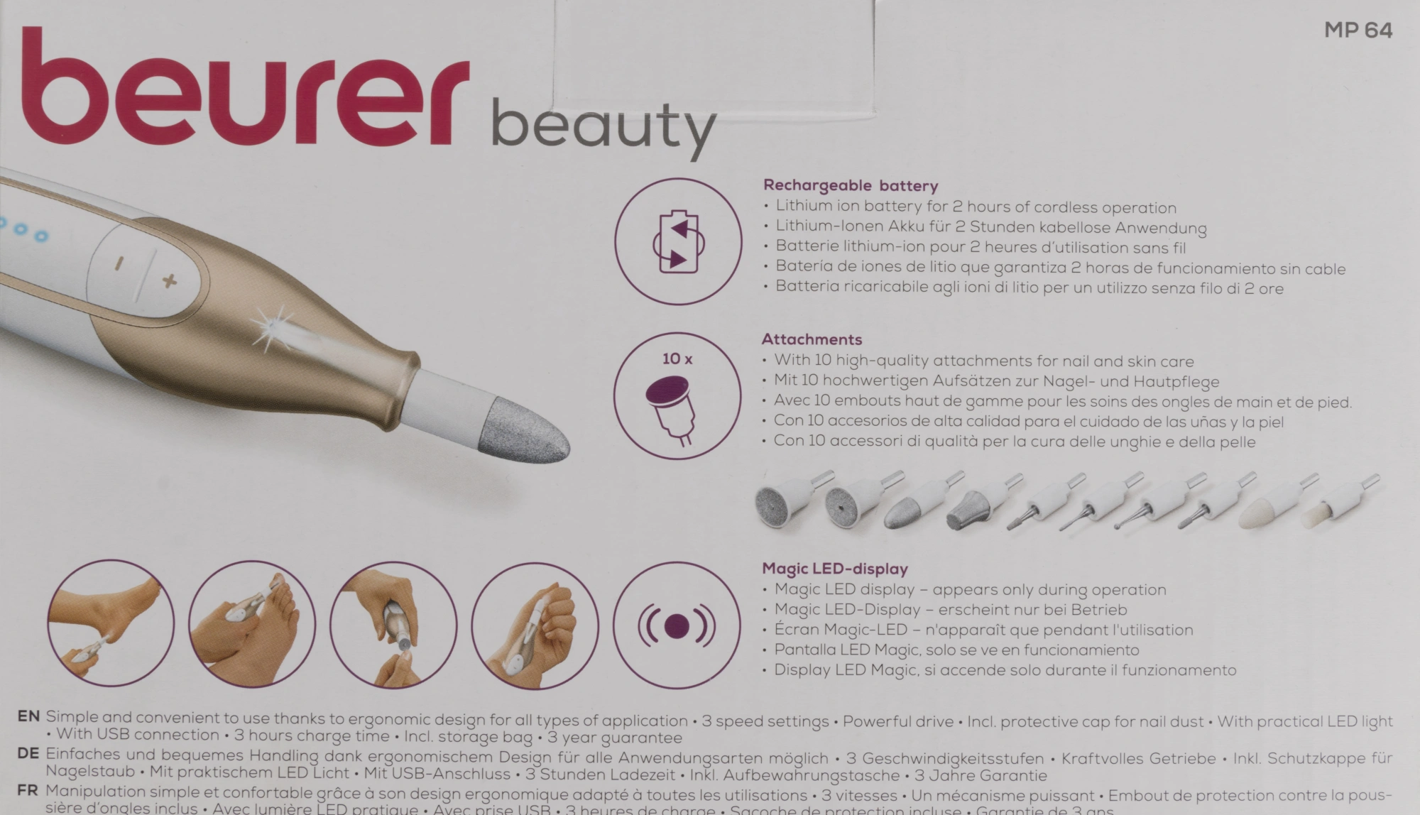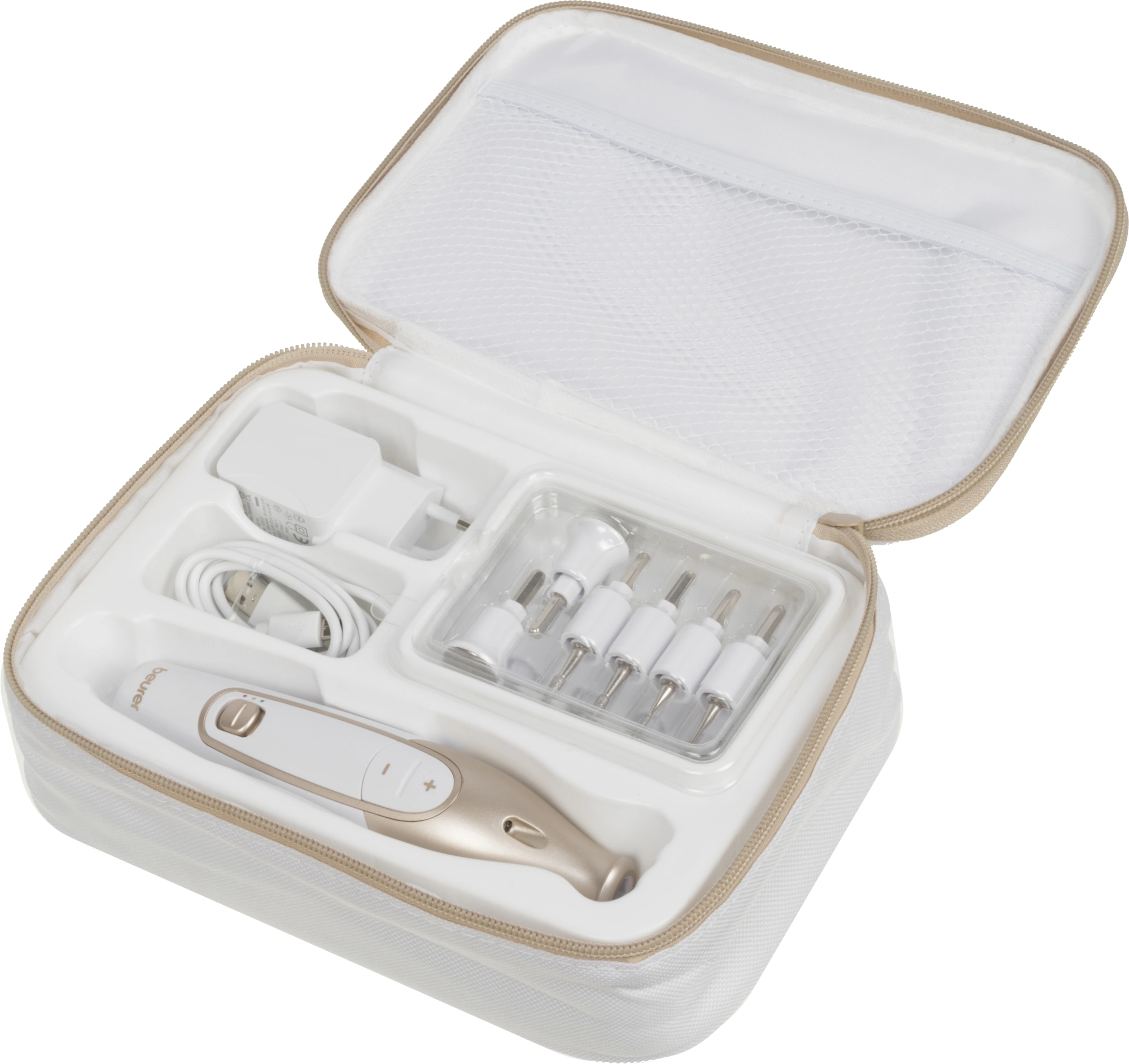 Набор для маникюра и педикюра, Мощный прибор с аккумулятором для комфортного беспроводного использования. , Светодиодный дисплей Magic — появляется только во время работы, 3 уровня скорости (вращение вправо и влево), В комплекте 10 высококачественных насадок: сапфировый и фетровый конусы