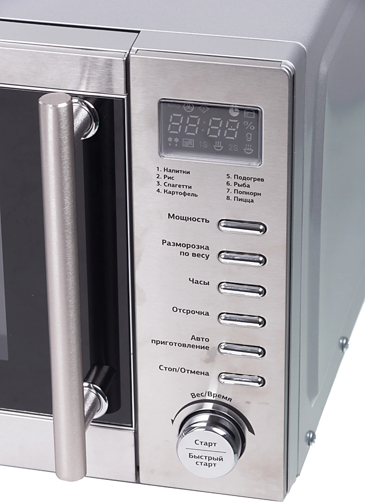 6 уровней мощности. Таймер 95 мин. Мощность печи 700 Вт. Многоступенчатое приготовление. Дисплей с часами. Блокировка от детей. Функция «разморозка». Экспресс повар.