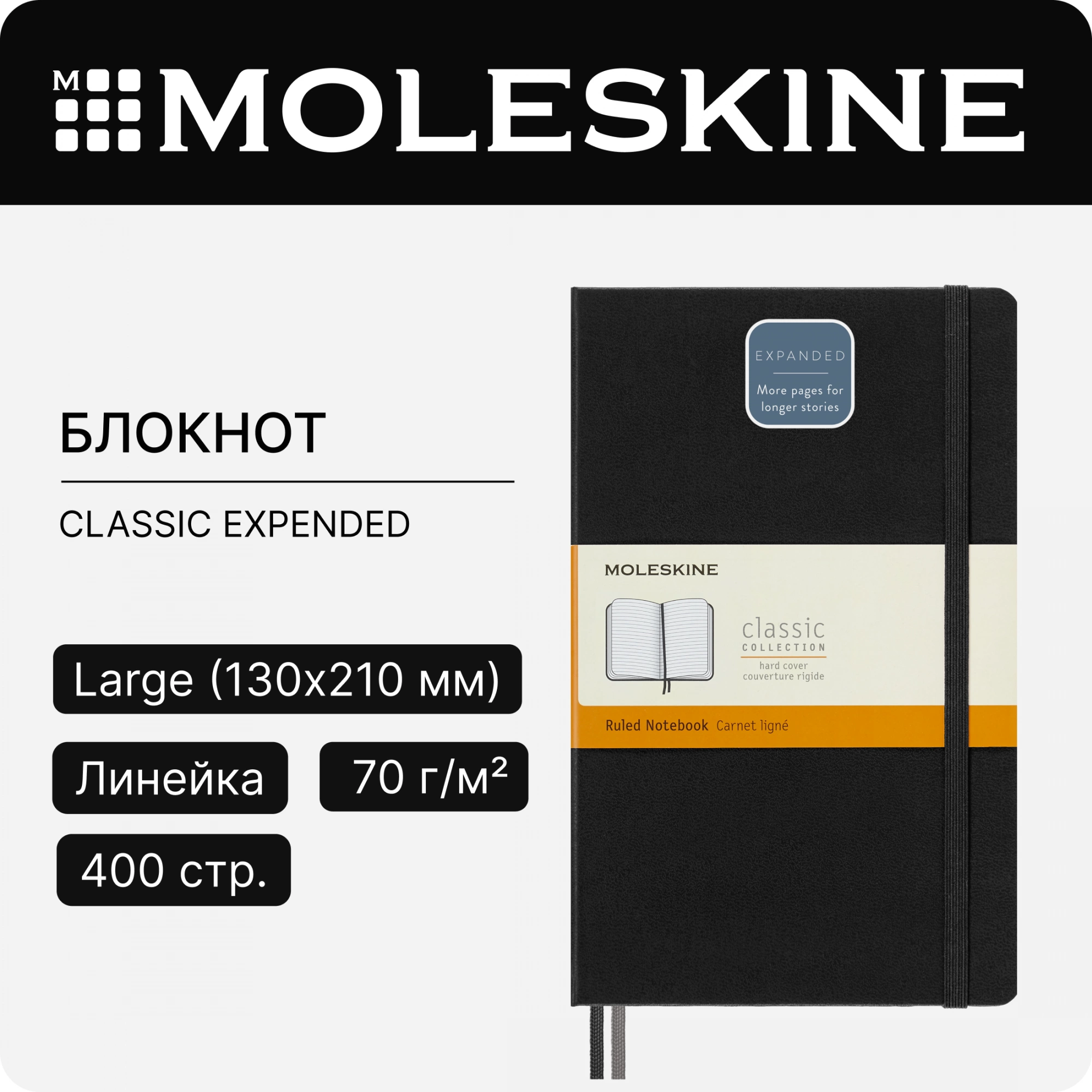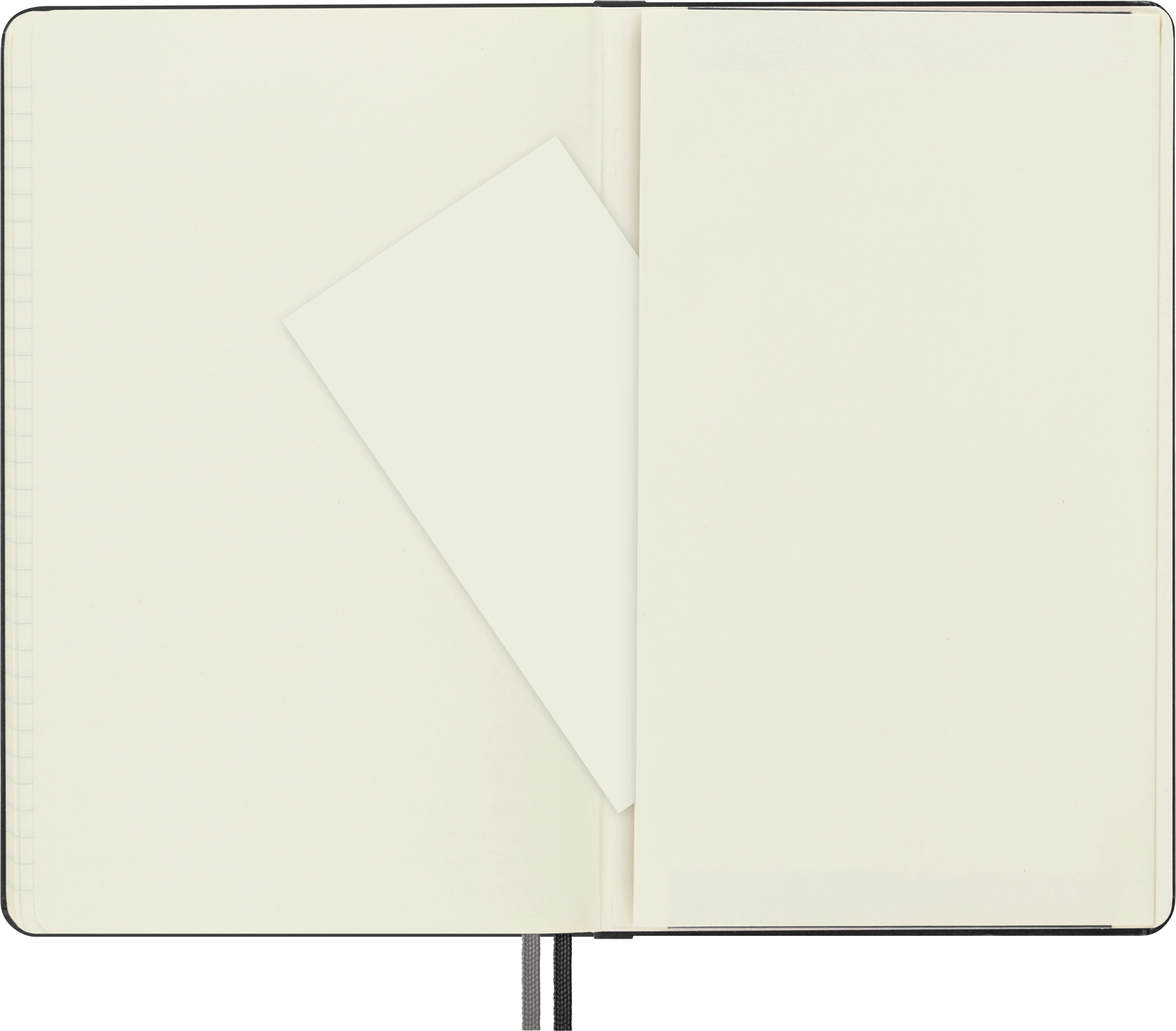 В дизайне увеличенной записной книжки Classic использованы знаменитые фирменные элементы Moleskine: закругленные углы, расширяемый внутренний кармашек для отдельных записок, сделанных на ходу, эластичная застежка подходящего цвета, чтобы ваши идеи пребывали в сохранности, а также специальная надпись «In case of loss», где можно указать свои контактные данные и награду для того, кто найдет ваши драгоценные записи.