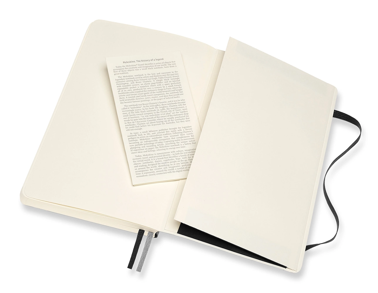 В дизайне увеличенной записной книжки Classic использованы знаменитые фирменные элементы Moleskine: закругленные углы, расширяемый внутренний кармашек для отдельных записок, сделанных на ходу, эластичная застежка подходящего цвета, чтобы ваши идеи пребывали в сохранности, а также специальная надпись «In case of loss», где можно указать свои контактные данные и награду для того, кто найдет ваши драгоценные записи.