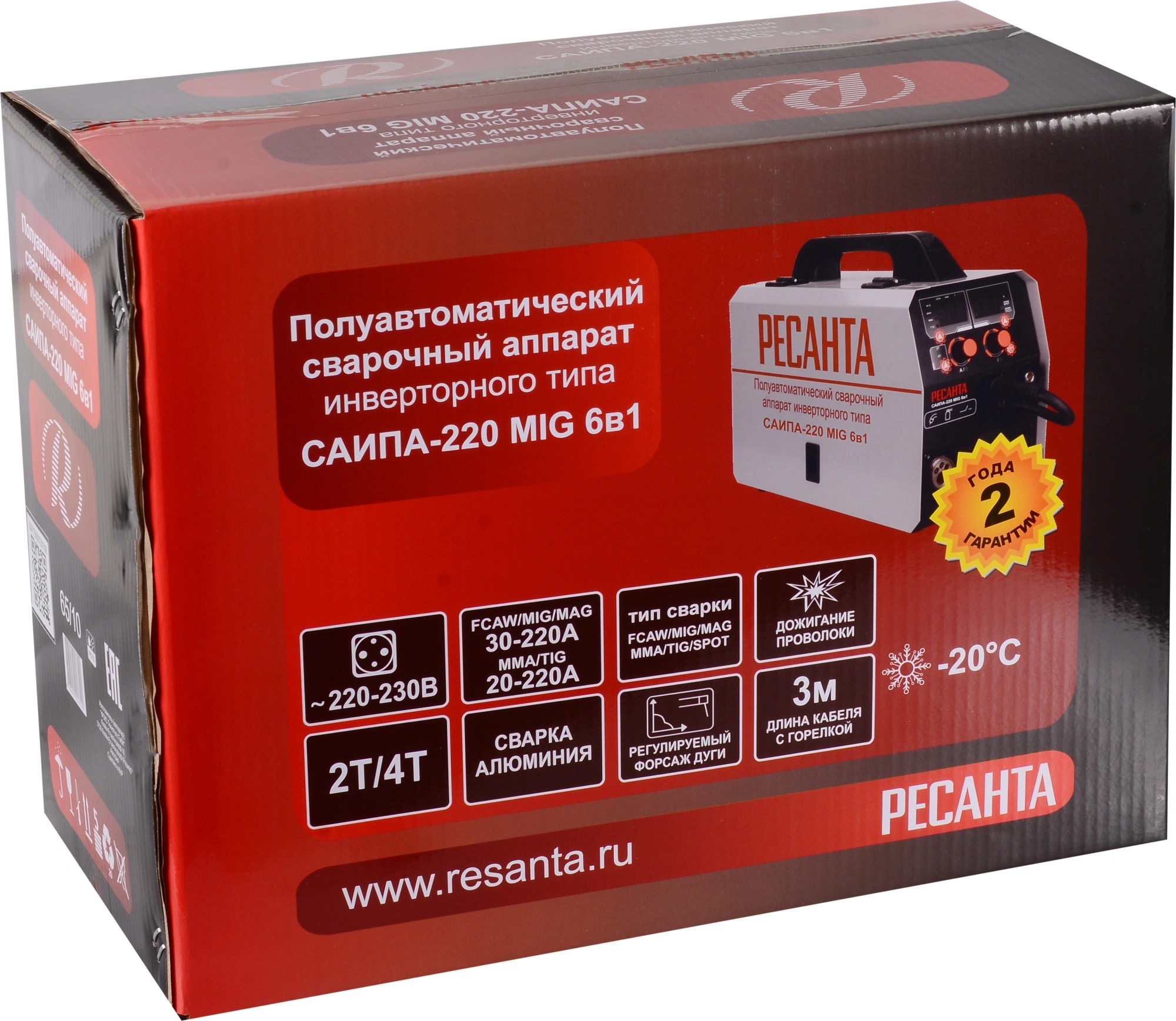 Сварочный аппарат инверторный полуавтоматический РЕСАНТА САИПА-220 с функцией ММА предназначен для ручной электродуговой сварки постоянным током проволокой в среде защитного газа - углекислого, аргона или их смеси. Применяется для высококачественной сварки низкоуглеродистых сталей.