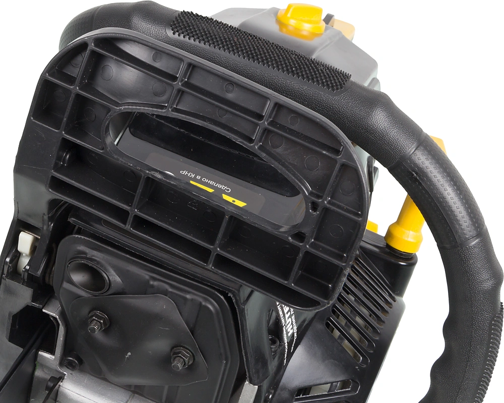 Преимущества: - Боковое расположение механизма натяжения цепи. - Комбинированная система управления заслонками карбюратора. - Регулируемый карбюратор отличается удобством и простотой настройки. - Ручной топливный насос предназначен для облегчения первого запуска.