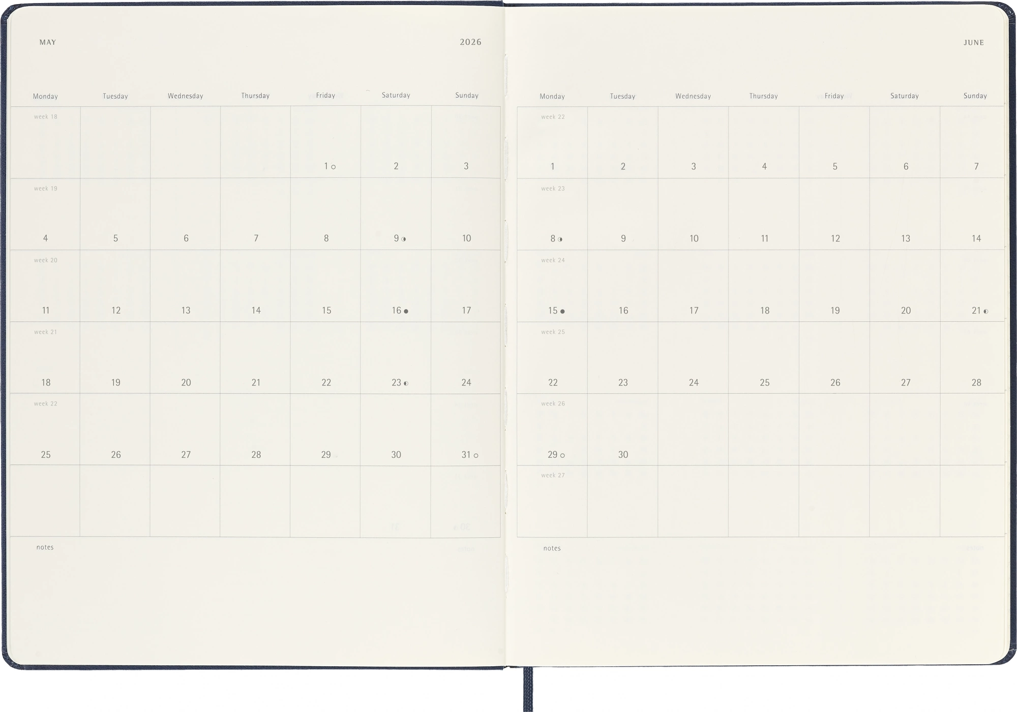 Записная книжка-еженедельник Moleskine датирована с января по декабрь.