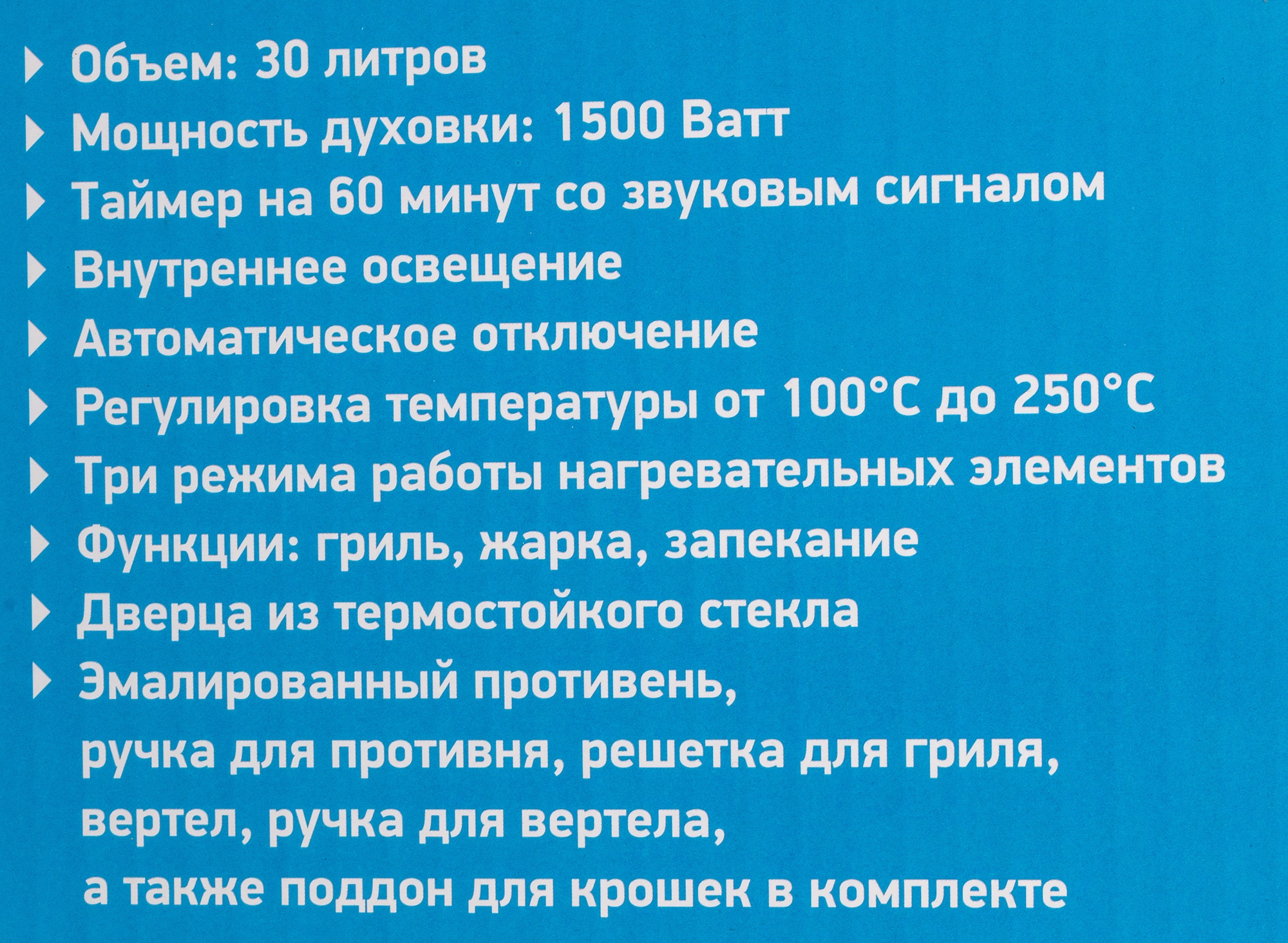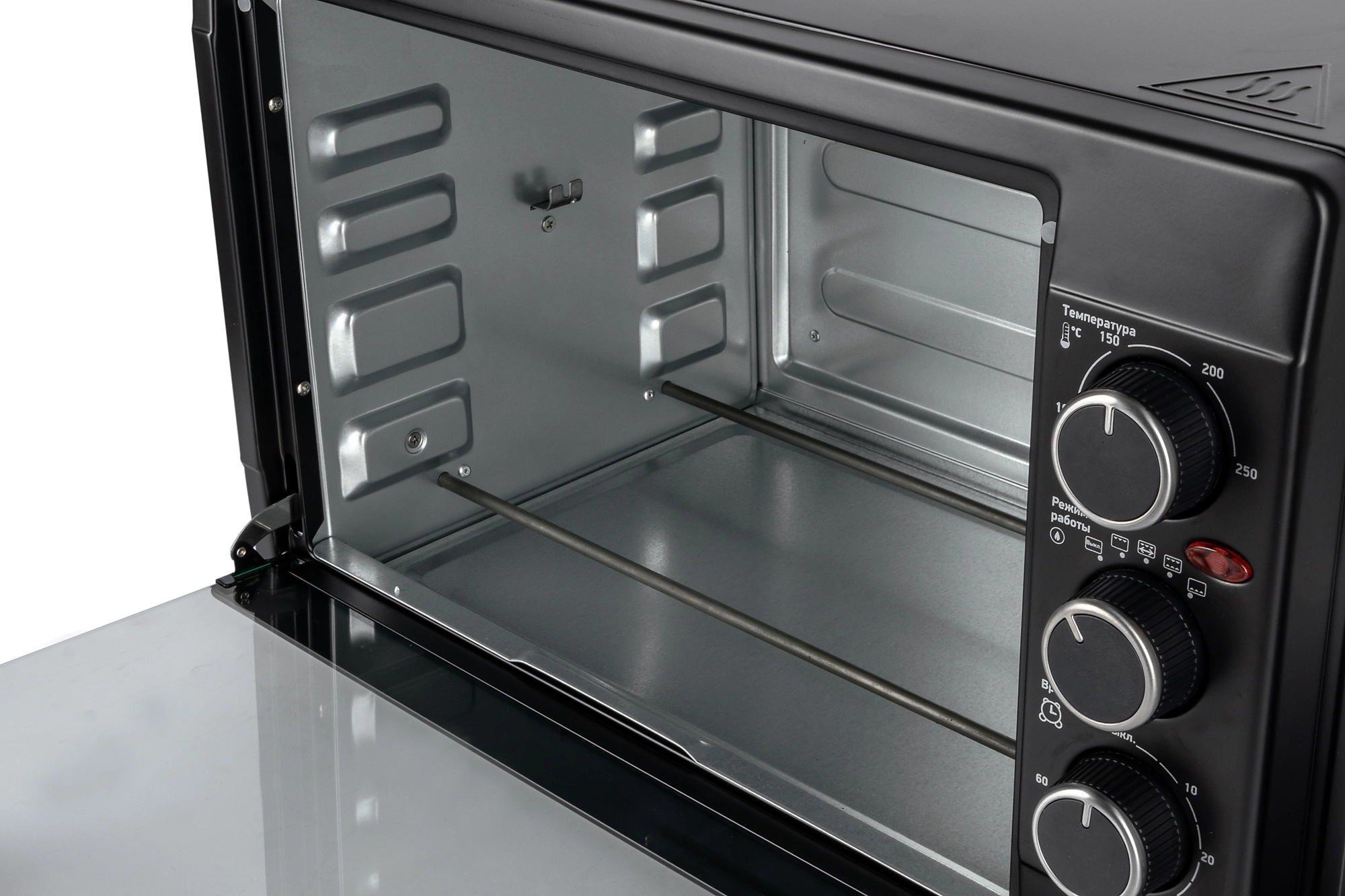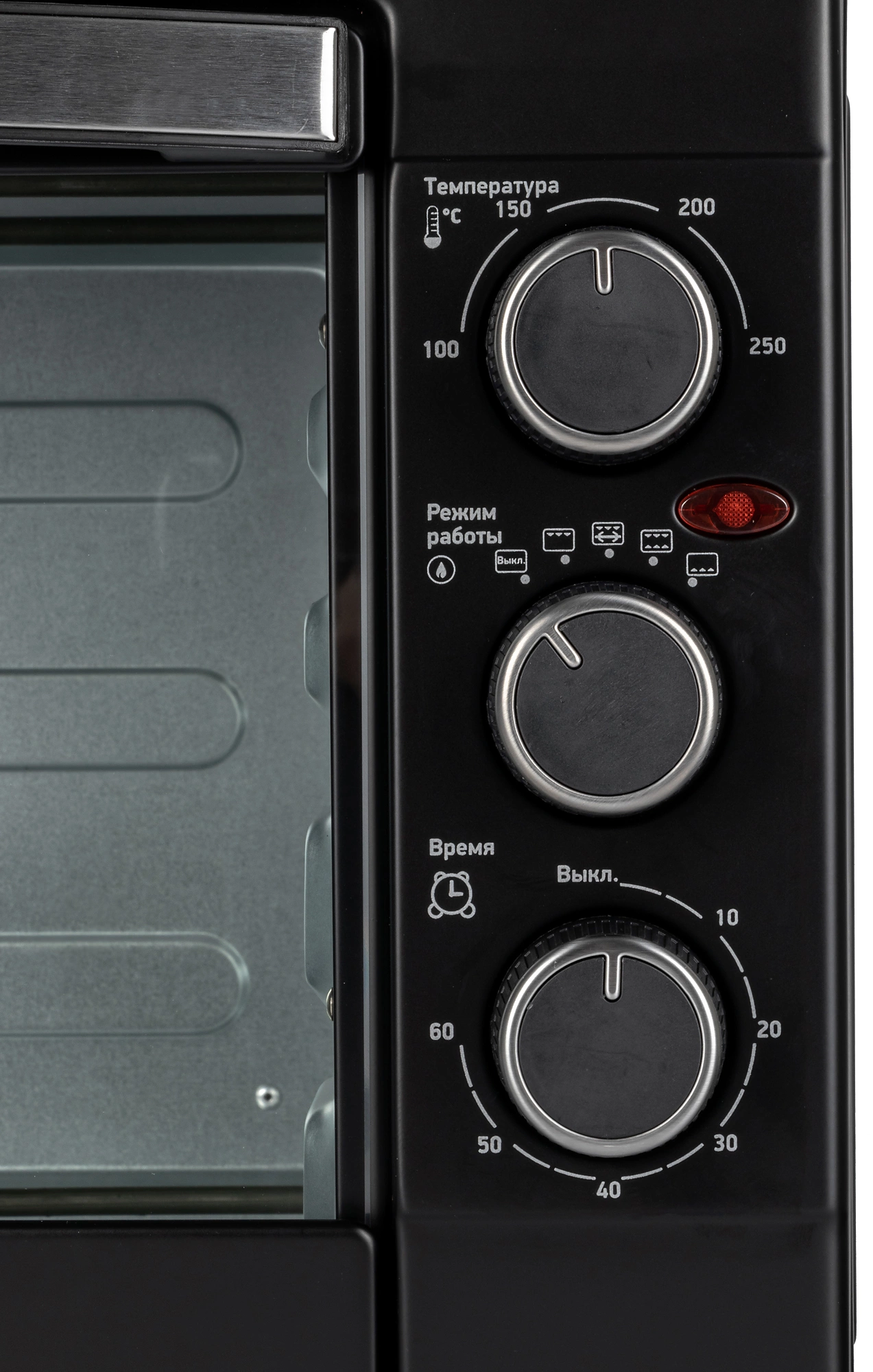 Таймер на 60 минут со звуковым сигналом, Автоматическое отключение, Дверца из термостойкого стекла, Внутреннее освещение