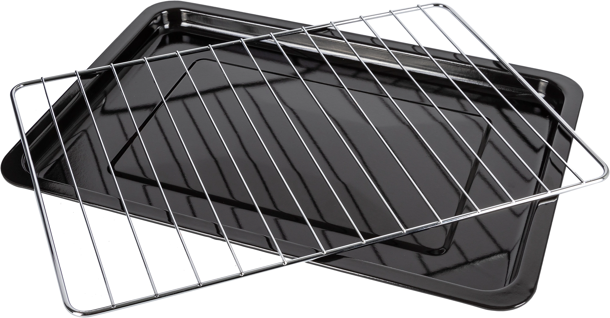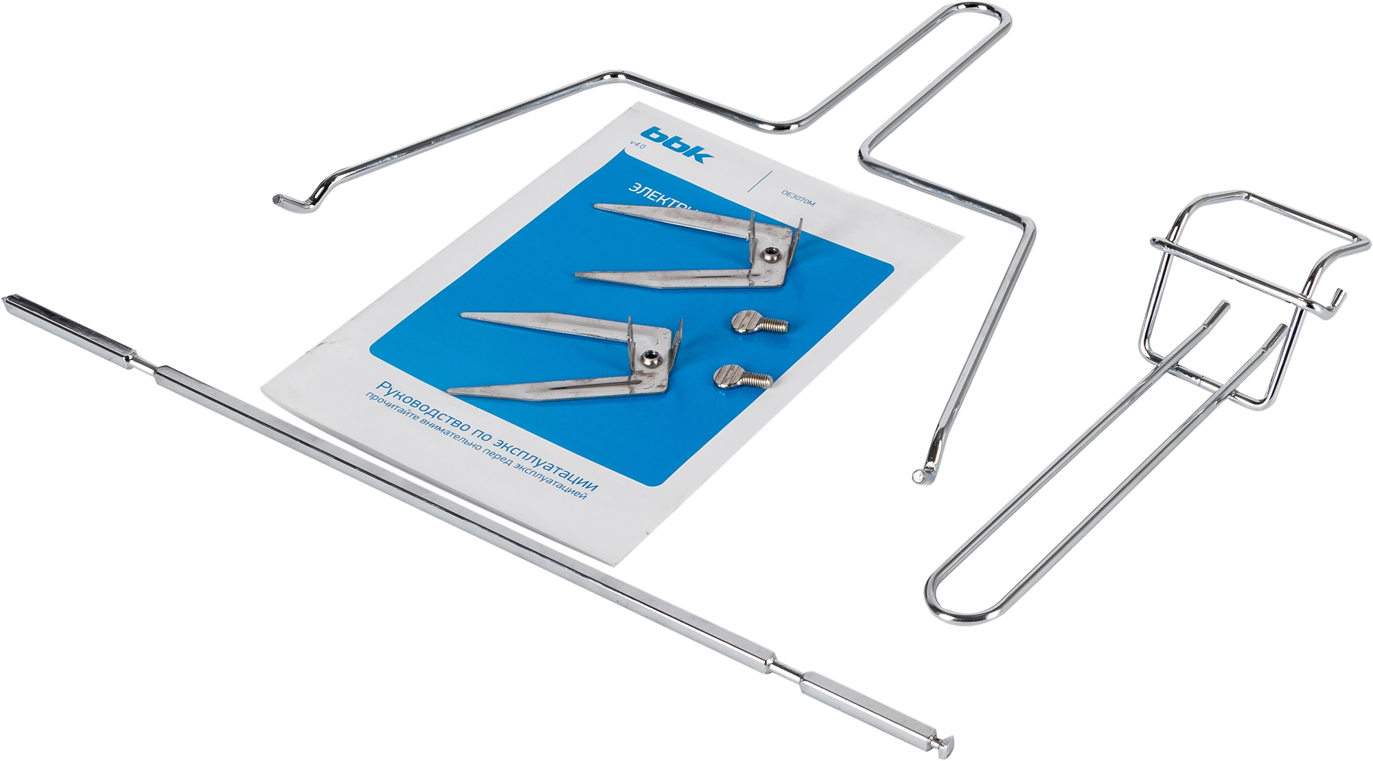 Противень, решетка и ручка для противня, поддон для крошек, вертел, ручка для вертела.