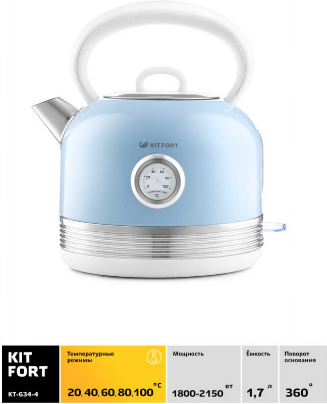 1.7л. 2150Вт голубой корпус: металл/пластик