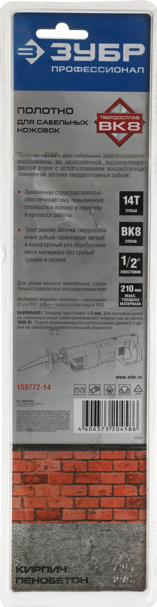 Полотна ЗУБР для сабельных электроножовок изготовлены из качественной высокоуглеродистой стали с использованием высокоточных технологий заточки твердосплавных зубьев.