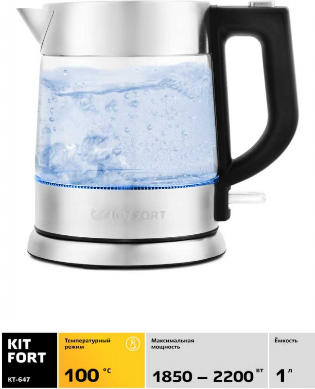 1л. 2200Вт нержавеющая сталь/черный корпус: стекло...
