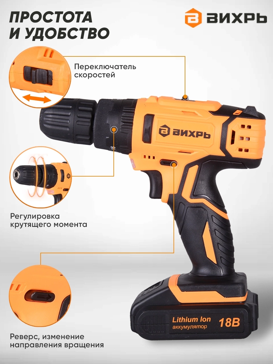 Дрель оснащена функцией сверления с ударом; Удлиненная форма устройства обеспечивает удобство при сверлении в труднодоступных местах, а также усиливает корпус позволяя закручивать крепеж с наименьшими трудозатратами; Лёгкий вес и прорезиненная ручка обеспечивает комфортную работу.