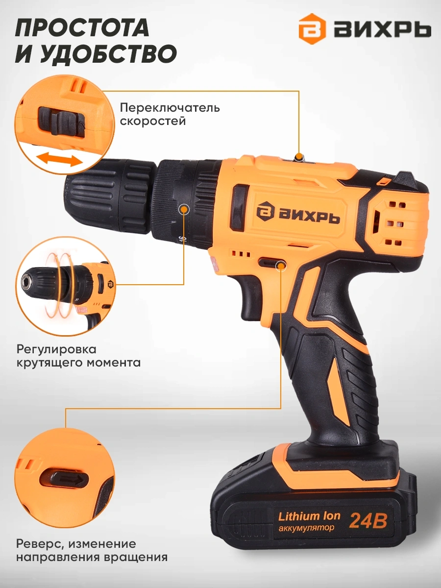 Аккумуляторная дрель-шуруповерт Вихрь ДА-24Л-2кУ используется домашними мастерами для ремонтно-монтажных работ. Модель оборудована быстрозажимным патроном, поэтому смена оснастки занимает минимальное количество времени. Литий-ионная технология увеличивает срок службы аппарата.