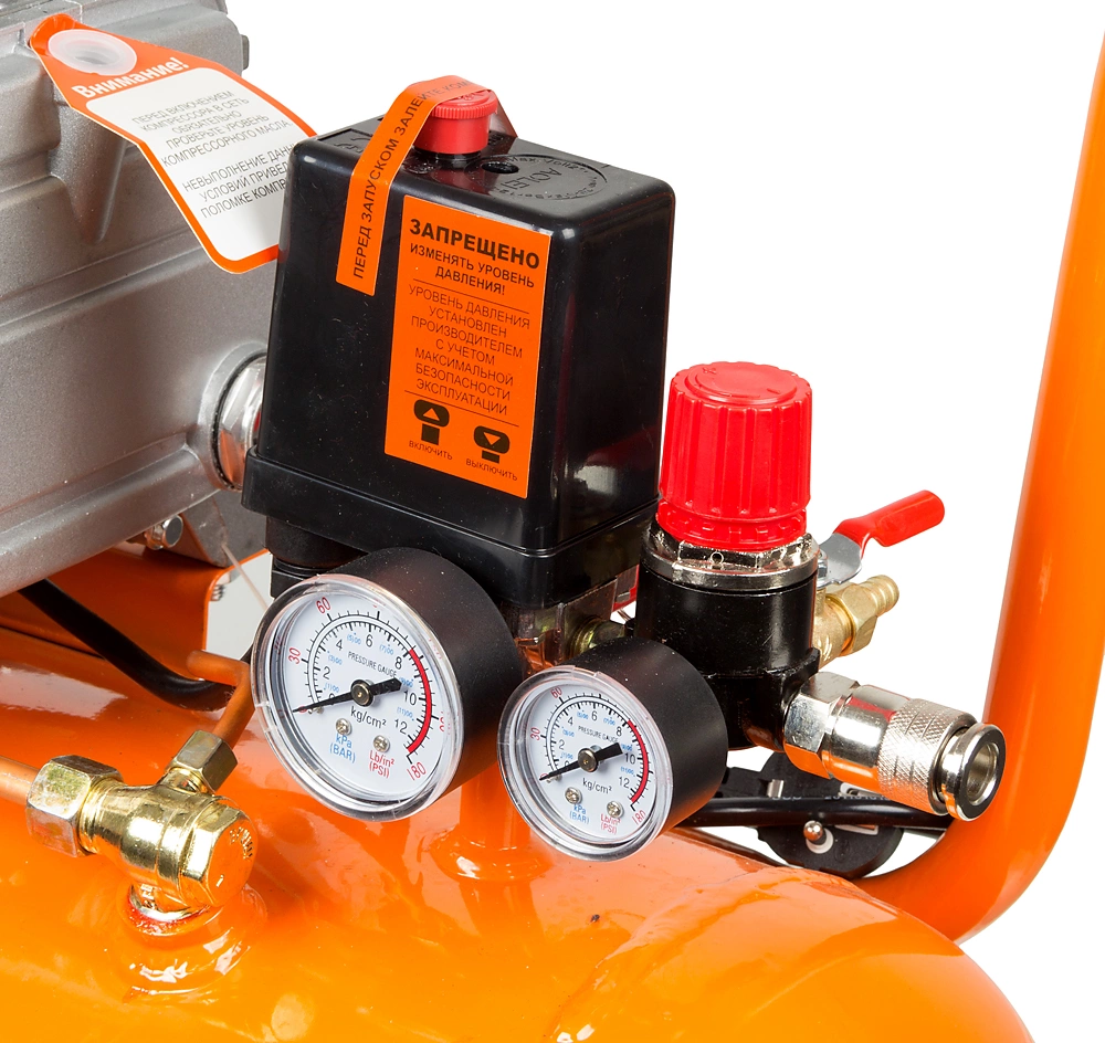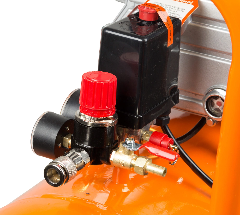 Имеется воздушный фильтр для очистки всасываемого воздуха и предохранения поршневой группы от пыли и посторонних частиц.Ножки с резиновыми наконечниками для устойчивости. Встроенное реле давления обеспечит работу компрессора в автоматическом режиме.