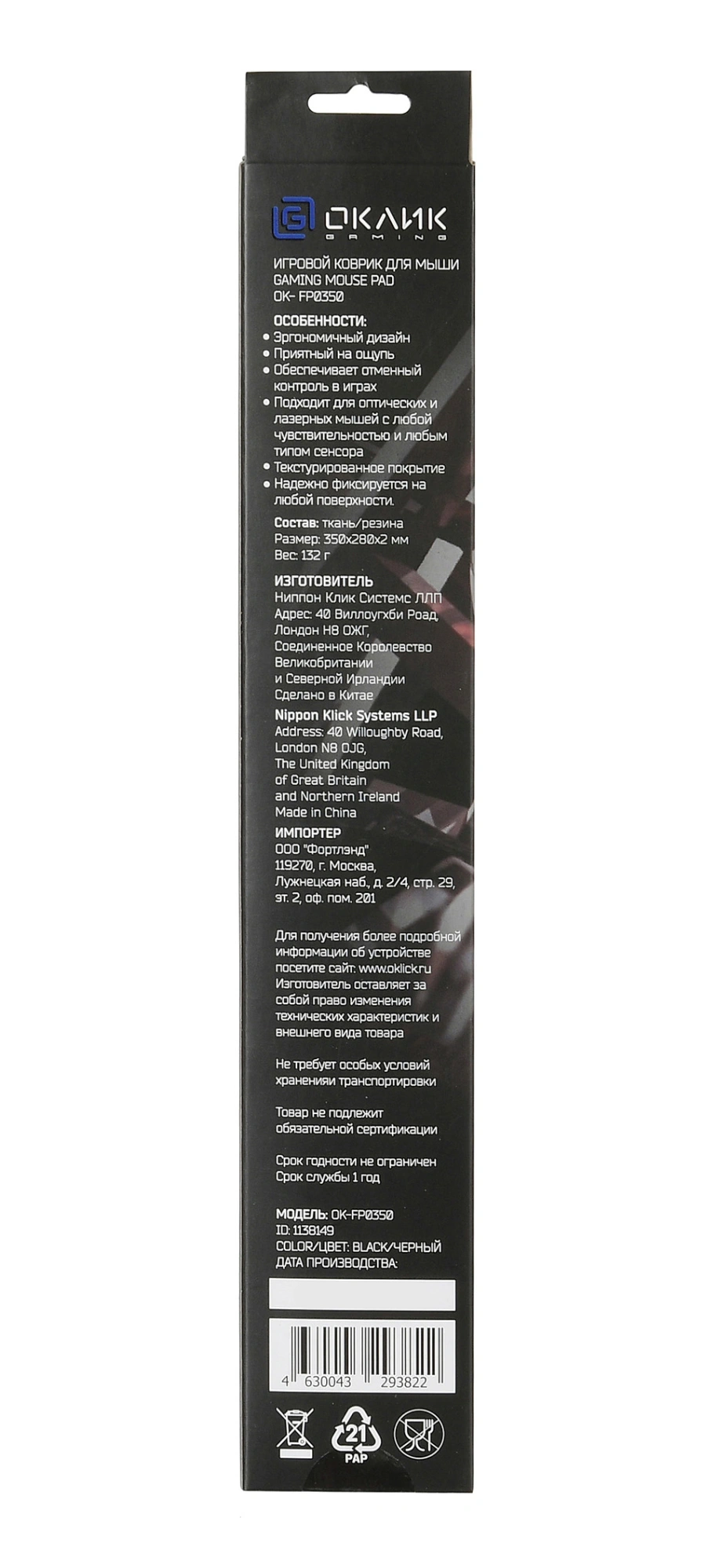 OK-F0450 обладает оптимальным размером – 350x280x2мм. Он даёт достаточно места для комфортной работы с мышью, позволяя свободно перемещать ее. Этот размер идеален для стандартных игровых столов и рабочих поверхностей.