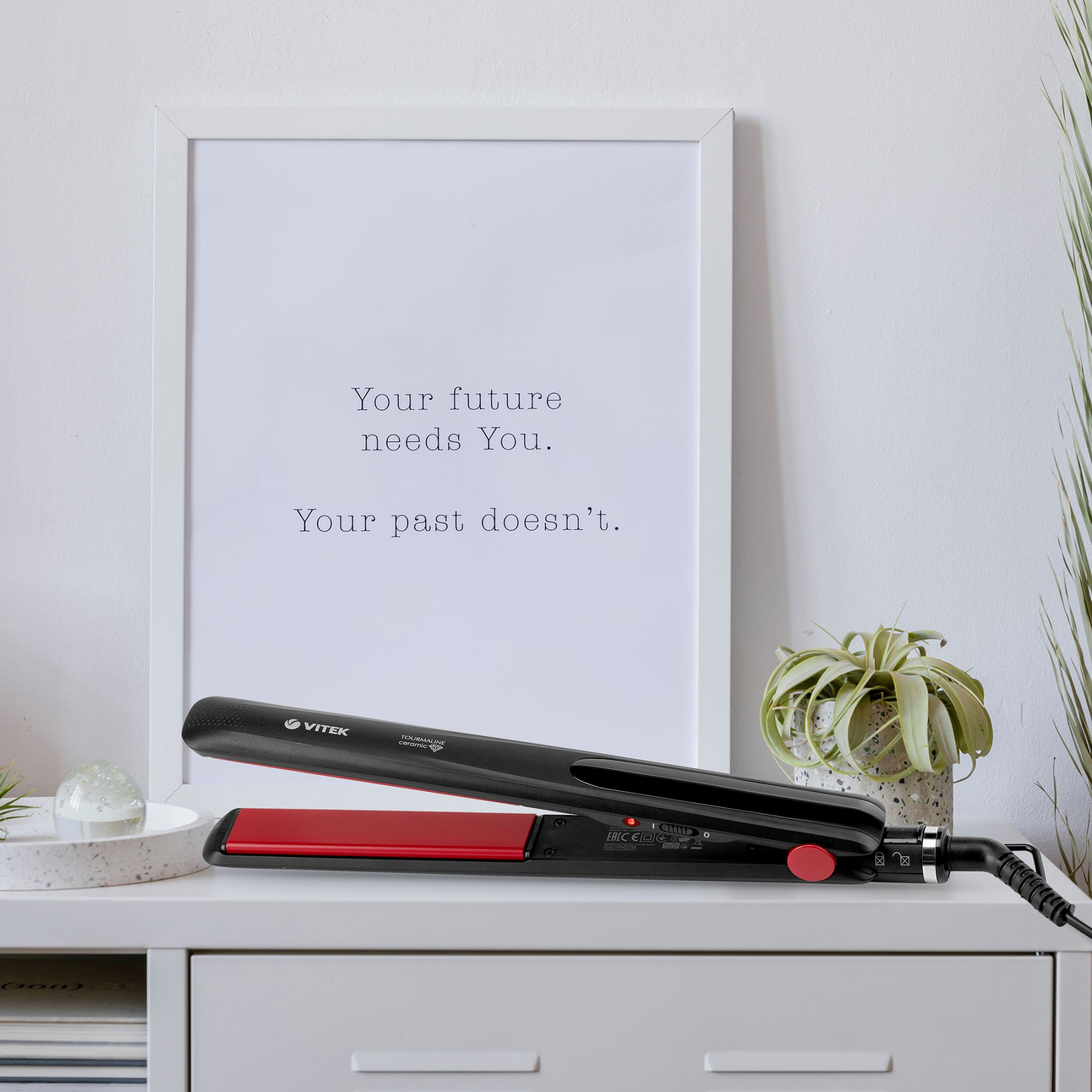 Выпрямитель VITEK VT-8282 в стильном черно-красном корпусе понравится обладательницам длинных густых волнистых волос – удлинённые плавающие пластины способны справиться даже с самыми неподатливыми кудрями. Керамическое покрытие пластин Tourmaline ceramic сохранит волосы естественно увлажненными за счет равномерного распределения тепла по поверхности пластин.