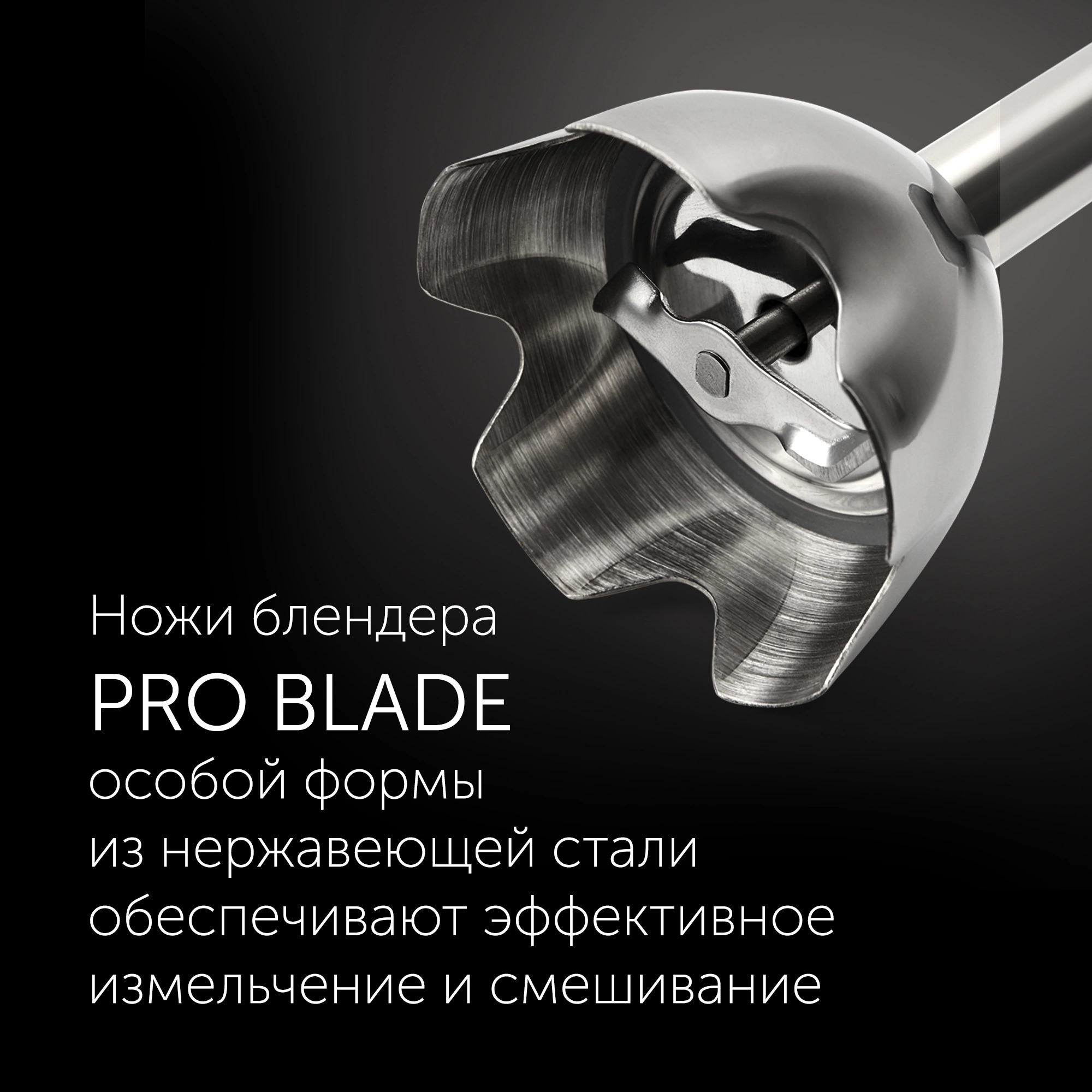 Ножи блендера PRO Blade особой формы из нержавеющей стали обеспечивают эффективное измельчение и смешивание.