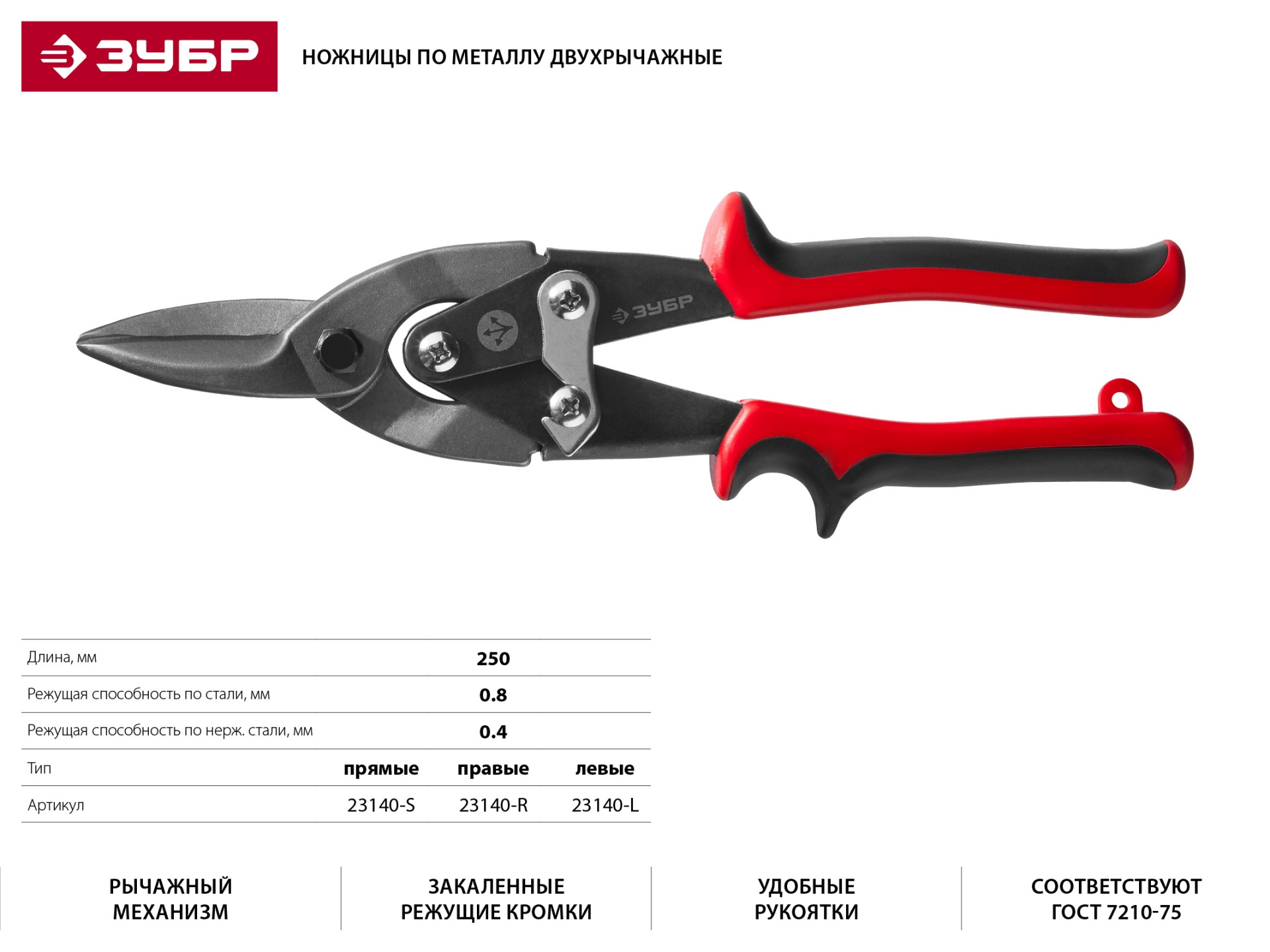 Ножницы по металлу для точного реза листового металла, режущая способность: сталь 0.8 мм, нерж. 0.4 мм