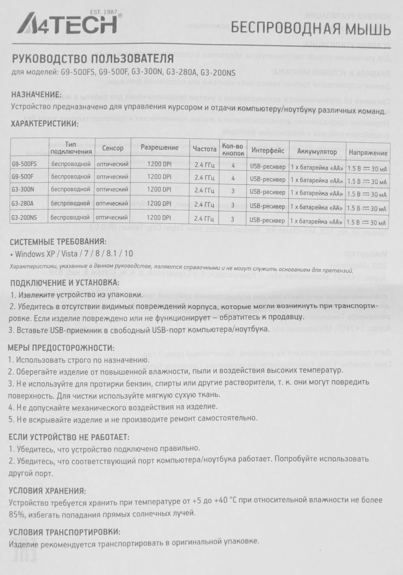 черный оптическая 1200dpi беспров. USB для ноутбук...