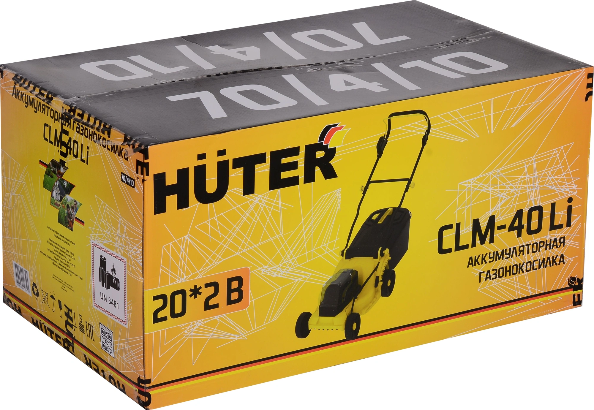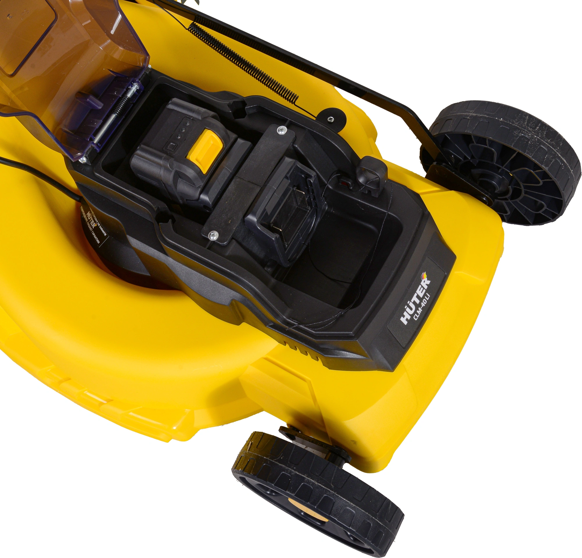 Газонокосилка; Сборная рукоятка, в комплекте с фурнитурой; Аккумуляторная батарея; Зарядное устройство; Ключ безопасности; Комплект ключей для демонтажа; Травосборник; Руководство по эксплуатации