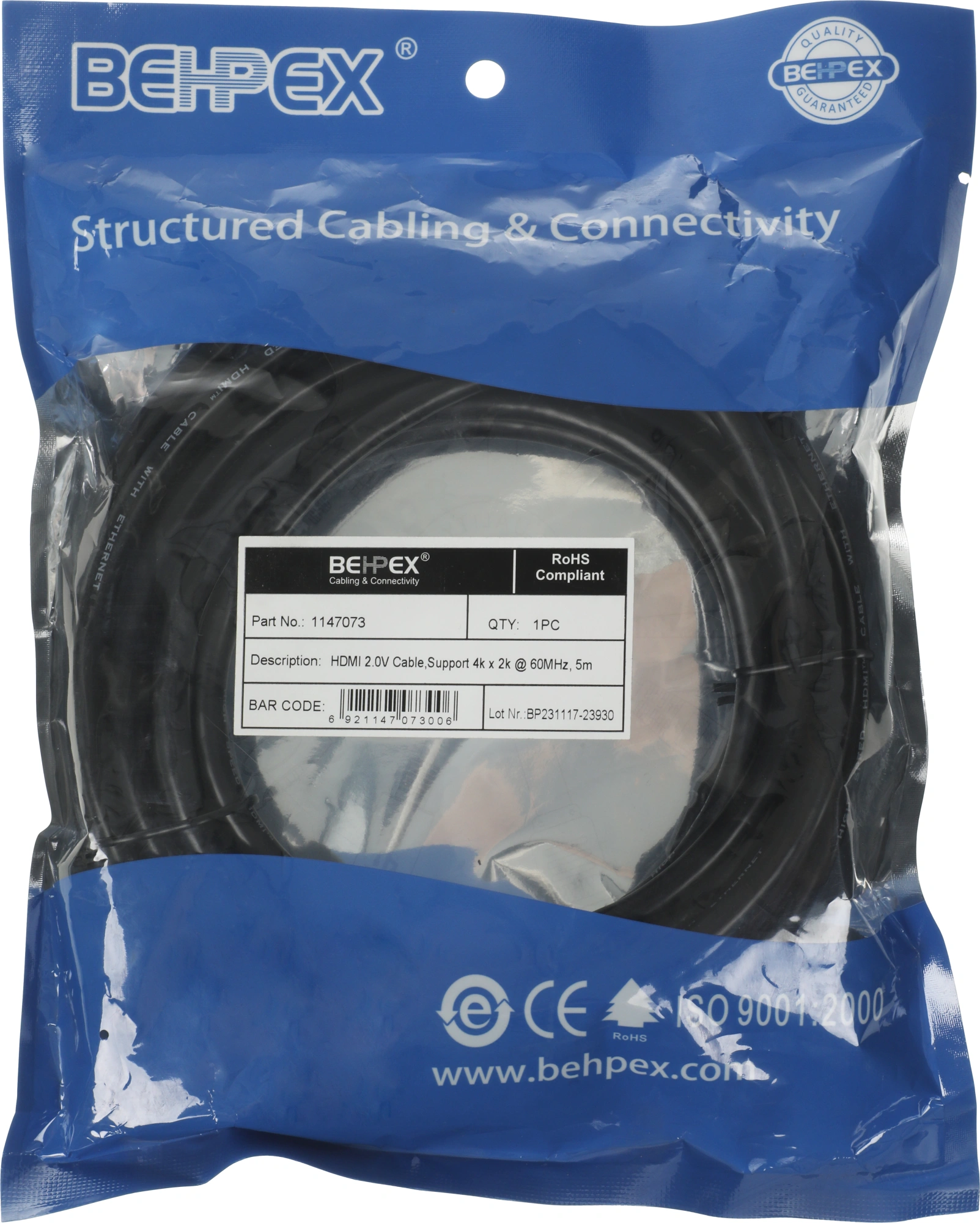 Кабель видео HDMI (m)/HDMI (m) 5м. черный