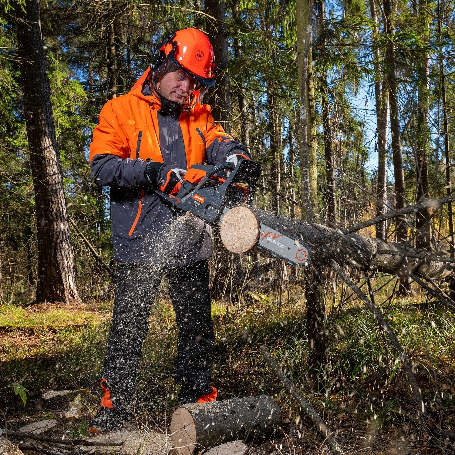 Электронное зажигание C.D.I.; Антивибрационная система DAEWOO; Корпус двигателя из металла; Поршневая группа с никасиловым покрытием; Моментальная остановка цепи; Эргономичная рукоятка включения; Металлический зубчатый упор