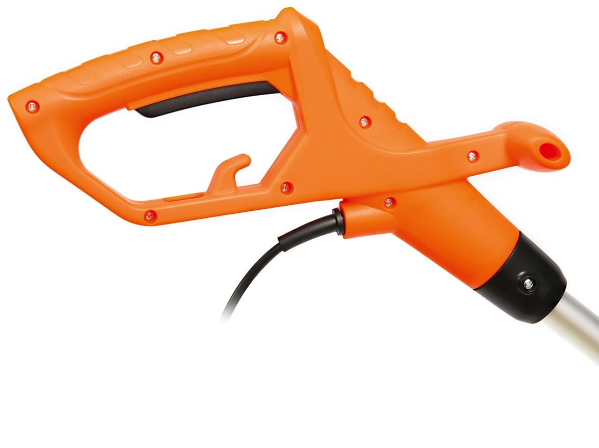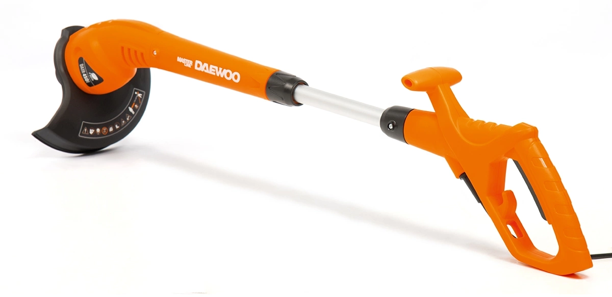 Электрический двигатель DAEWOO; Телескопическая рукоятка; Нижнее расположение двигателя; Защитный кожух из ударопрочного пластика
