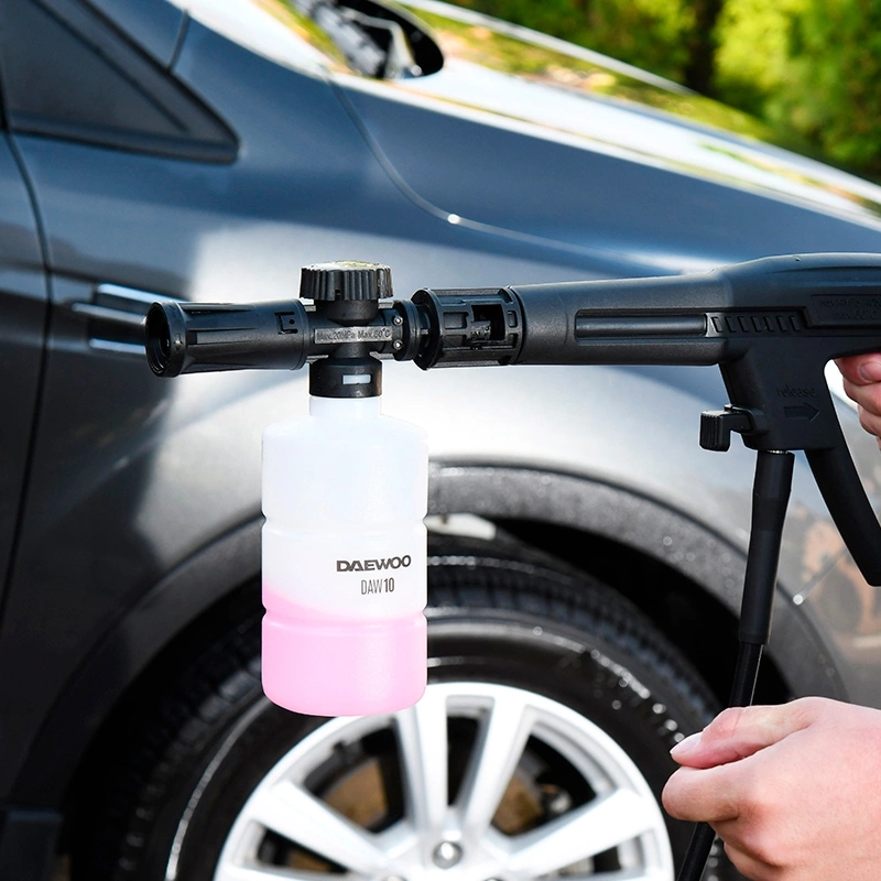Используется совместно с мойками высокого давления Daewoo. Образует стойкую густую пену. Плавная регулировка подачи моющего средства. Подключается в качестве насадки на пистолет, входящий в комплект мойки высокого давления.
