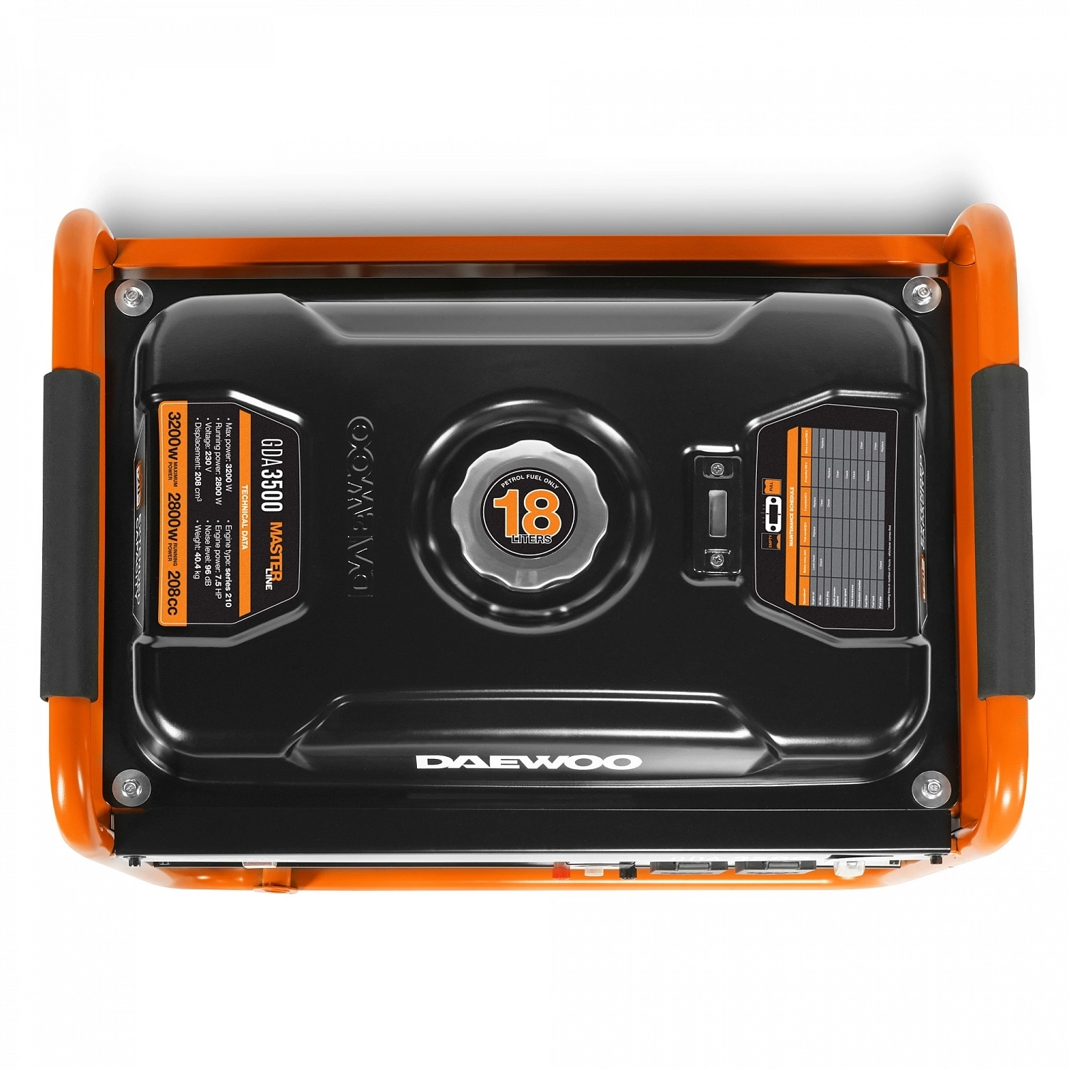 Профессиональный двигатель DAEWOO, увеличенный топливный бак 18 л, быстрый запуск, многофункциональный дисплей, AVR (Automatic Voltage Regulator), умная защита от перегрузок, датчик уровня масла, низкий уровень шума, прочная рама, 100% медный альтернатор, гарантия Daewoo