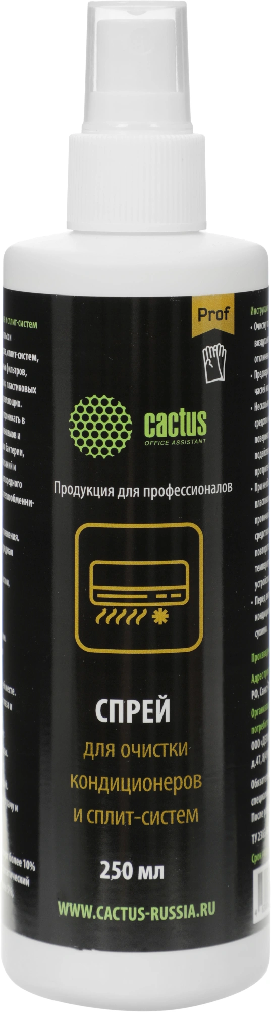 Спрей для очистки кондиционеров и сплит систем Cactus Professional предназначен как для профессиональной, так и для домашней очистки наружных и внутренних блоков кондиционеров, сплит-систем, декоративных решеток воздушных фильтров, пластиковых воздушных фильтров, пластиковых лопастей вентиляторов и их направляющих. Очищает от пыли, грязи, сажи и никотинового налета. Не оказывает вредного воздействия на покрытие трубок теплообменников.