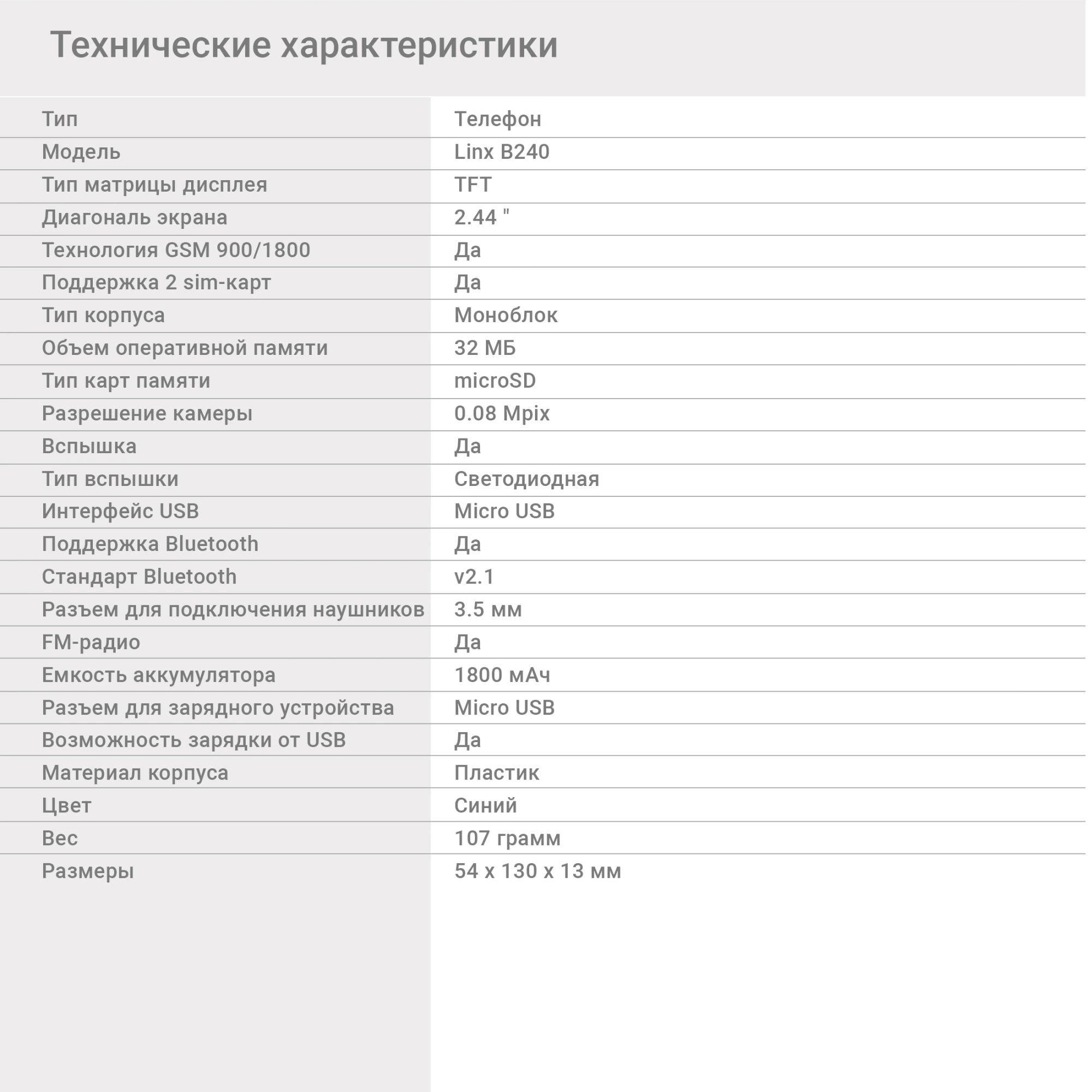 Linx 32Mb синий моноблок 2Sim 2.44" 240x320 0.08Mp...