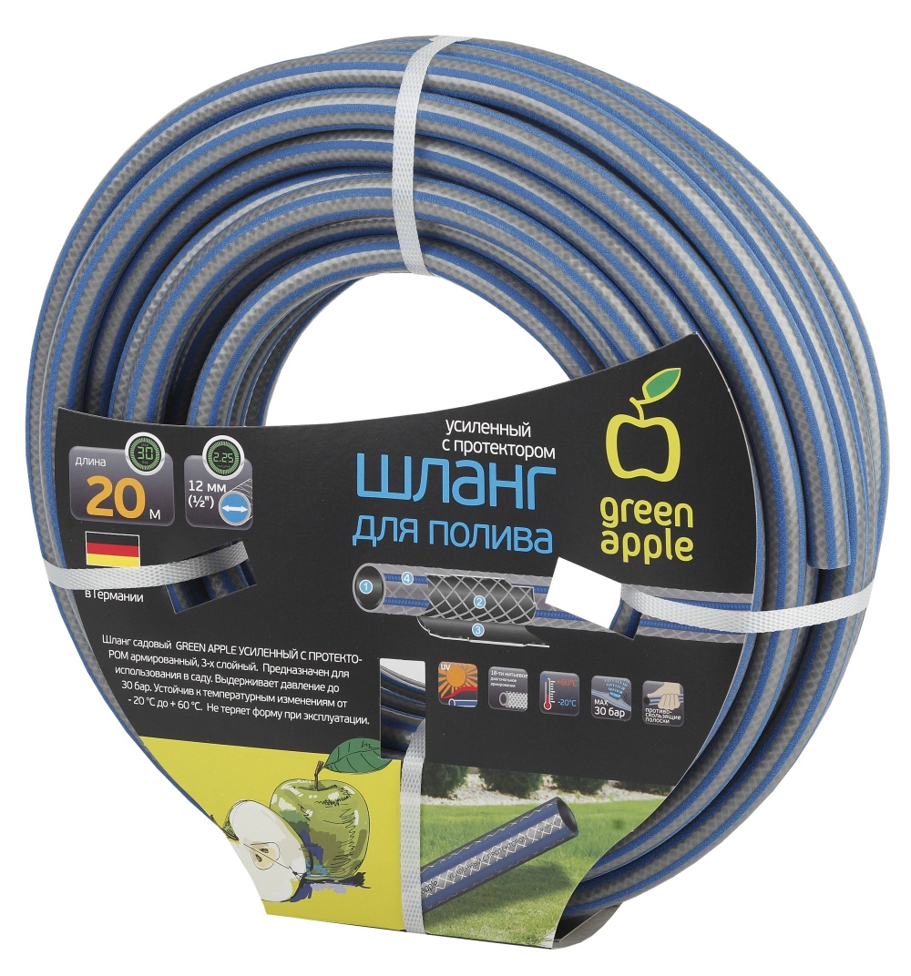 Усиленный армированный с протектором 3-х слойный шланг для полива. Защищен от ультрафиолетового излучения. Не теряет форму при эксплуатации. Рабочая температура от +60 до -20 градусов.
