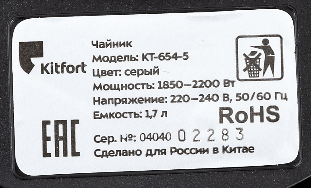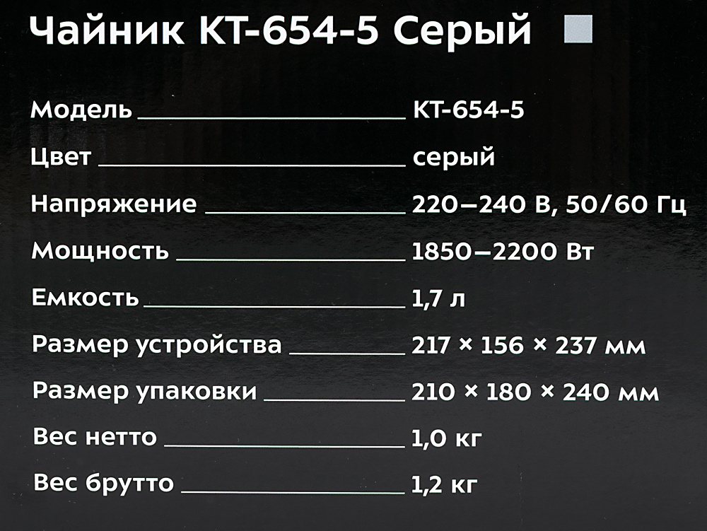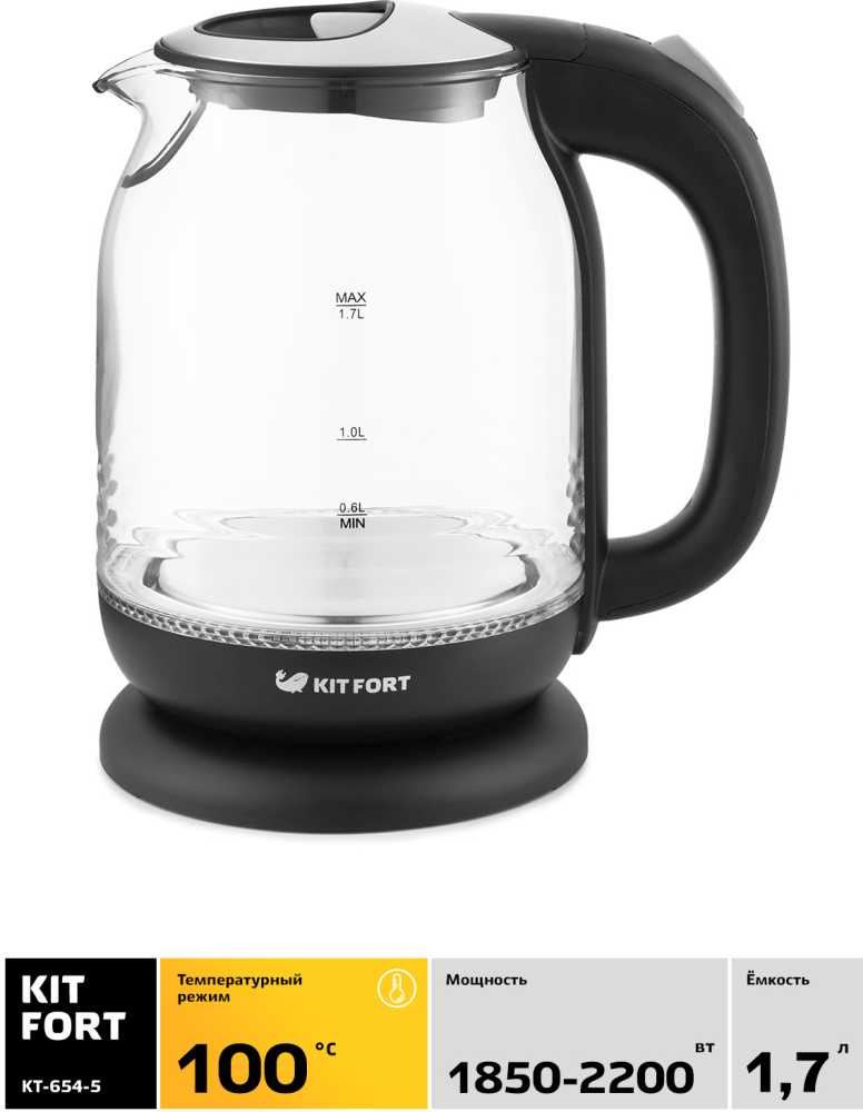 1.7л. 2200Вт черный/серый корпус: стекло/пластик